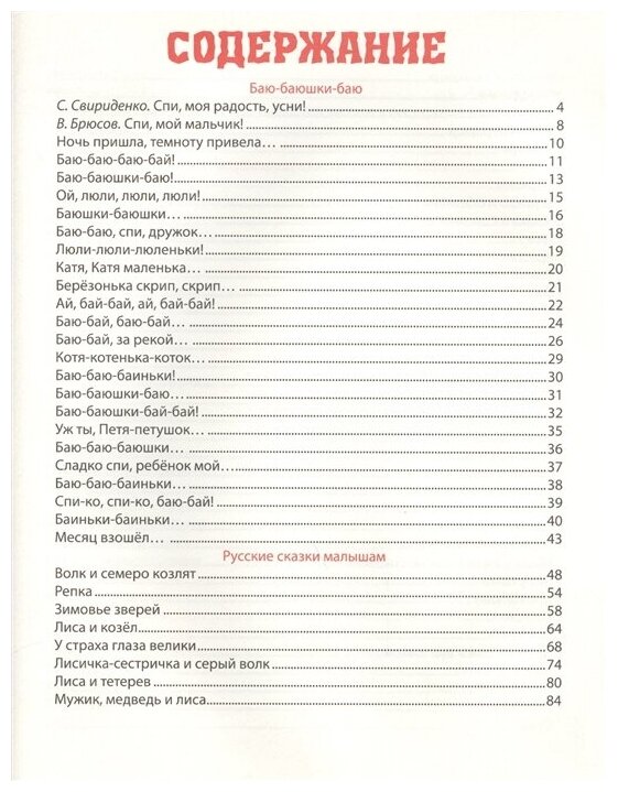 Очень хорошая подборка стихов и сказок собрана в этой книге. Радует оформление - иллюстрации яркие, живые. Иллюстрирована практически каждая страница книги. Все стихи и сказки подразделены на подгруппы. В первой - колыбельные стихи, во второй - русские сказки для самых маленьких, например, сказка Репка. В третьей группе стихи и сказки о хорошем поведении, в том числе басни Крылова и Толстого. В четвертой группе - любимые сказки для деток постарше. А в последней - сказки разных народов мира. Такую книгу приятно читать - переплет твердый, бумага плотная без глянца, шрифты четкие.