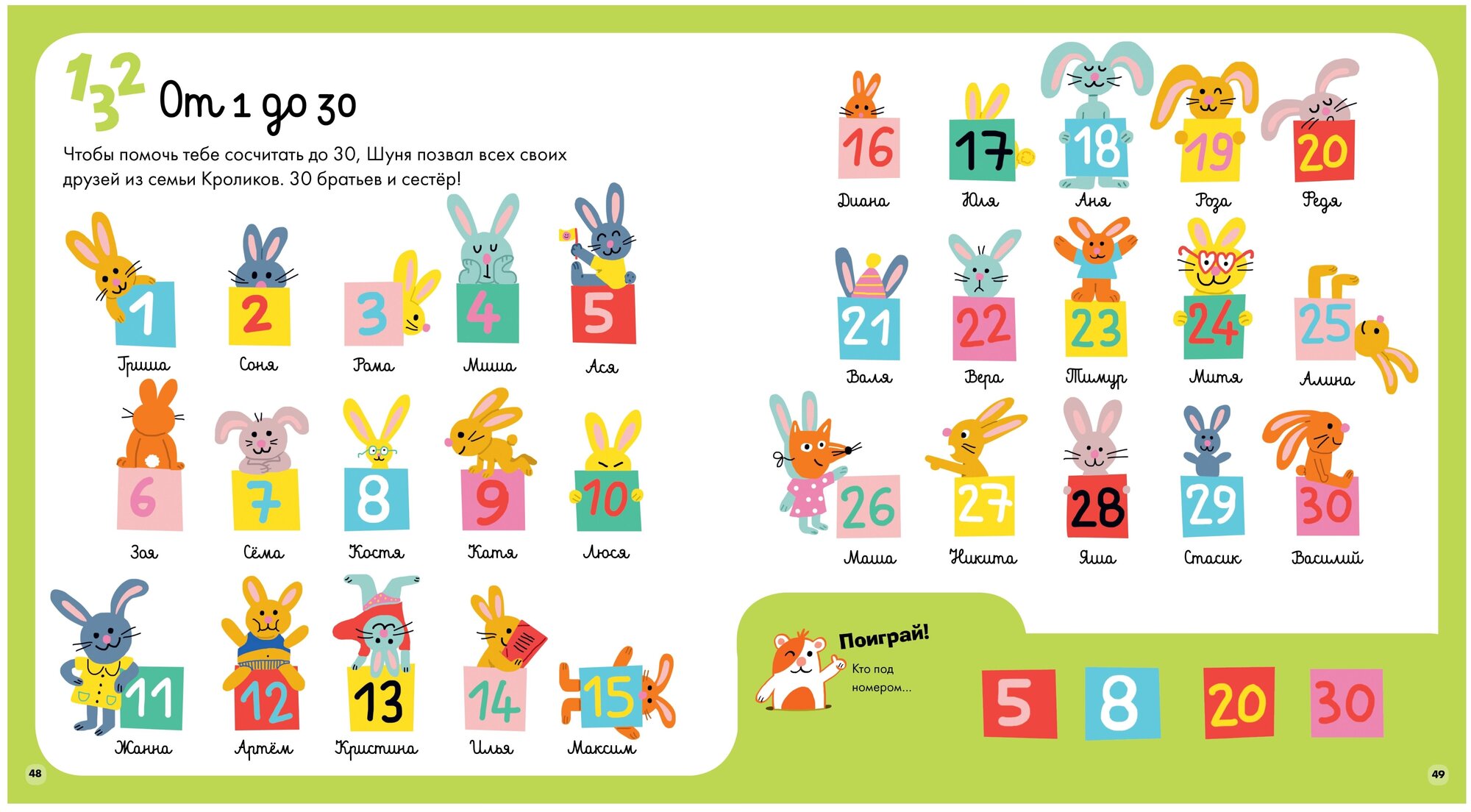 Компанию вам составят герои книжки Женя, Саша и Алиса, а также домашний питомец Алисы — хомячок Шуня. В книжке вы найдёте весёлые и разнообразные задания: найди и покажи, найди двойника, лабиринты, загадки, чего не хватает, найди пару.