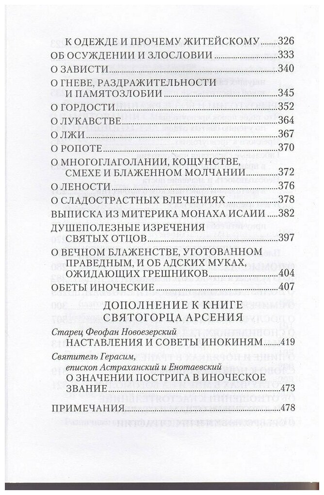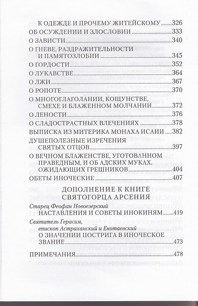 Отличный сборник жемчужин мудрости для спасения души для всех читателей, кому трудно осилить многотомные издания, особенно полезно для женской аудитории, так как афонский иеромонах Арсений многие беседы посвятил исключительно женским обителям. Но в книге есть также дополнение издательства старца Феофана Новозерского и святителя Герасима, которые прекрасно дополняют душеспасительные изречения афонского иеромонаха Арсения. Подборка материала и оформление книги в целом - выше всяких похвал. Удобный формат, четкий шрифт, качественная бумага, богатый список примечаний делают эту книгу приятной для чтения и познания мудрости. Спасибо издательству за красивую и познавательную книгу.