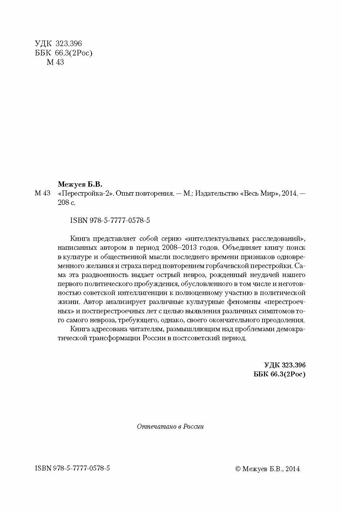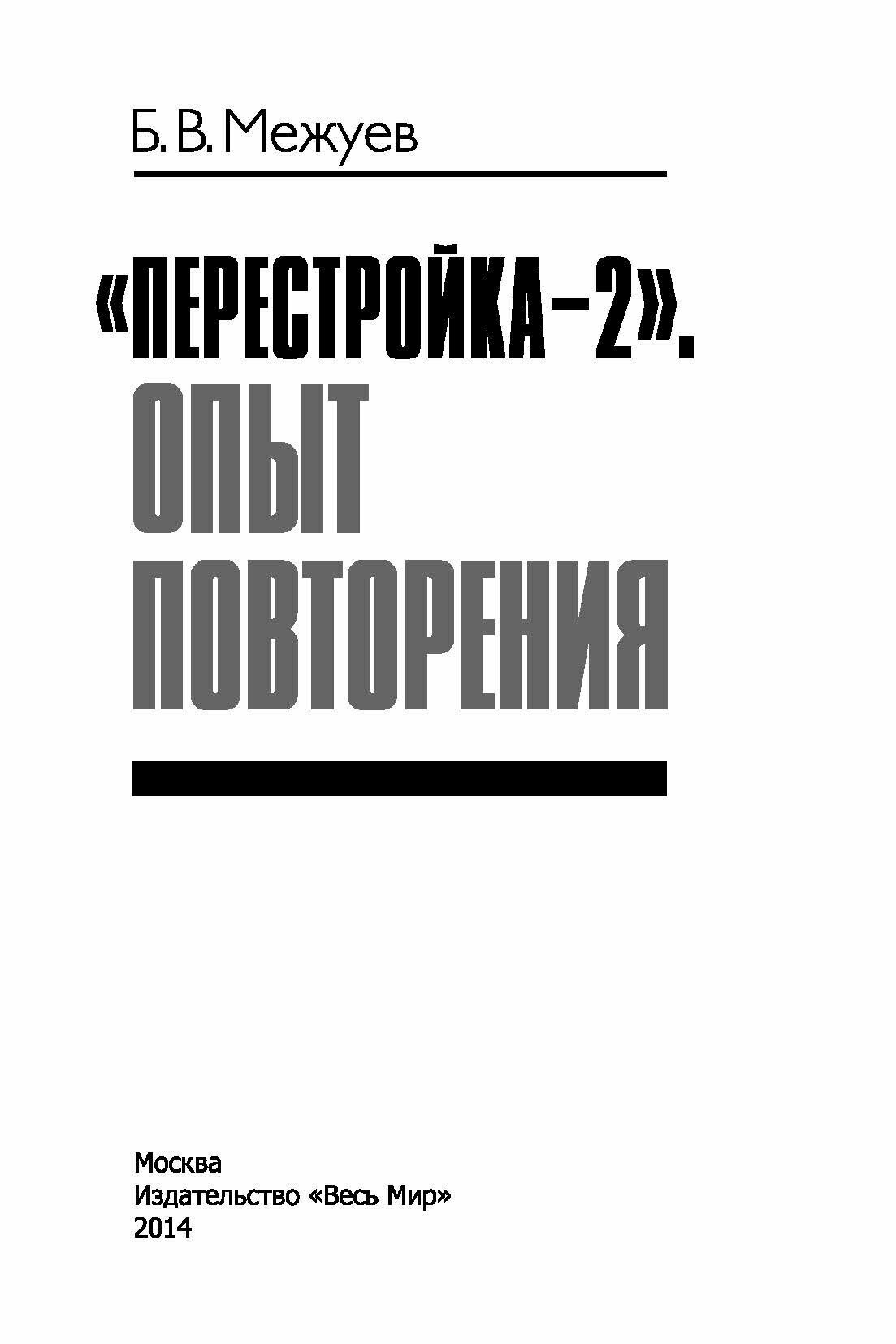 "Перестройка-2.". Опыт пройденного (Межуев Борис Вадимович); Весь мир, 2014