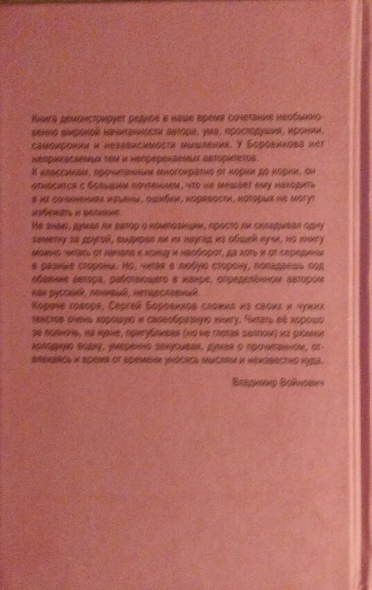 Сергей Григорьевич Боровиков - известный критик, успешный литературный деятель (именно он, возглавив журнал "Волга", по мнению С.И. Чупринина, превратил этот сугубо провинциальный, казалось бы, журнал в одно из лучших литературных изданий России) и, несомненно, мастер короткой прозы, в чем можно убедиться, прочитав его книгу "В русском жанре", которую А. Немзер назвал "романом о русской прозе". Вся она сделана из "якобы черновиков, заметок на полях, лениво-изумленных карандашных подчеркиваний очередной находки в книге, открытой исключительно по собственному желанию... Даже когда мемуарными фрагментами перемежаются читательские наблюдения, идут эти фрагменты все равно от тех же самых наблюдений" (О. Лебедушкина). Новая книга С. Г. Боровикова, собранная из нескольких сотен таких фрагментов, станет настоящей находкой для вдумчивого читателя.