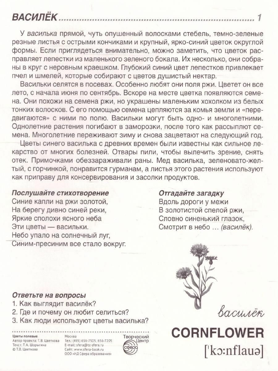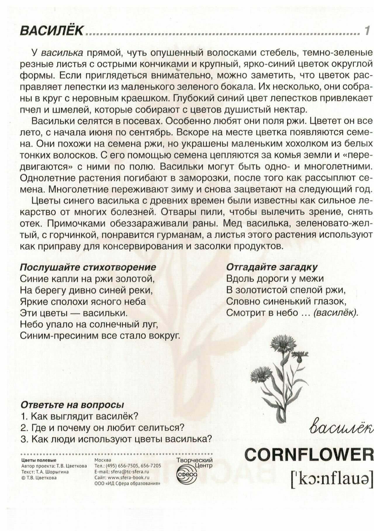 Демонстрационные картинки "Цветы полевые" (173х220 мм) (Цветкова Татьяна Владиславовна); ТЦ Сфера, 2022