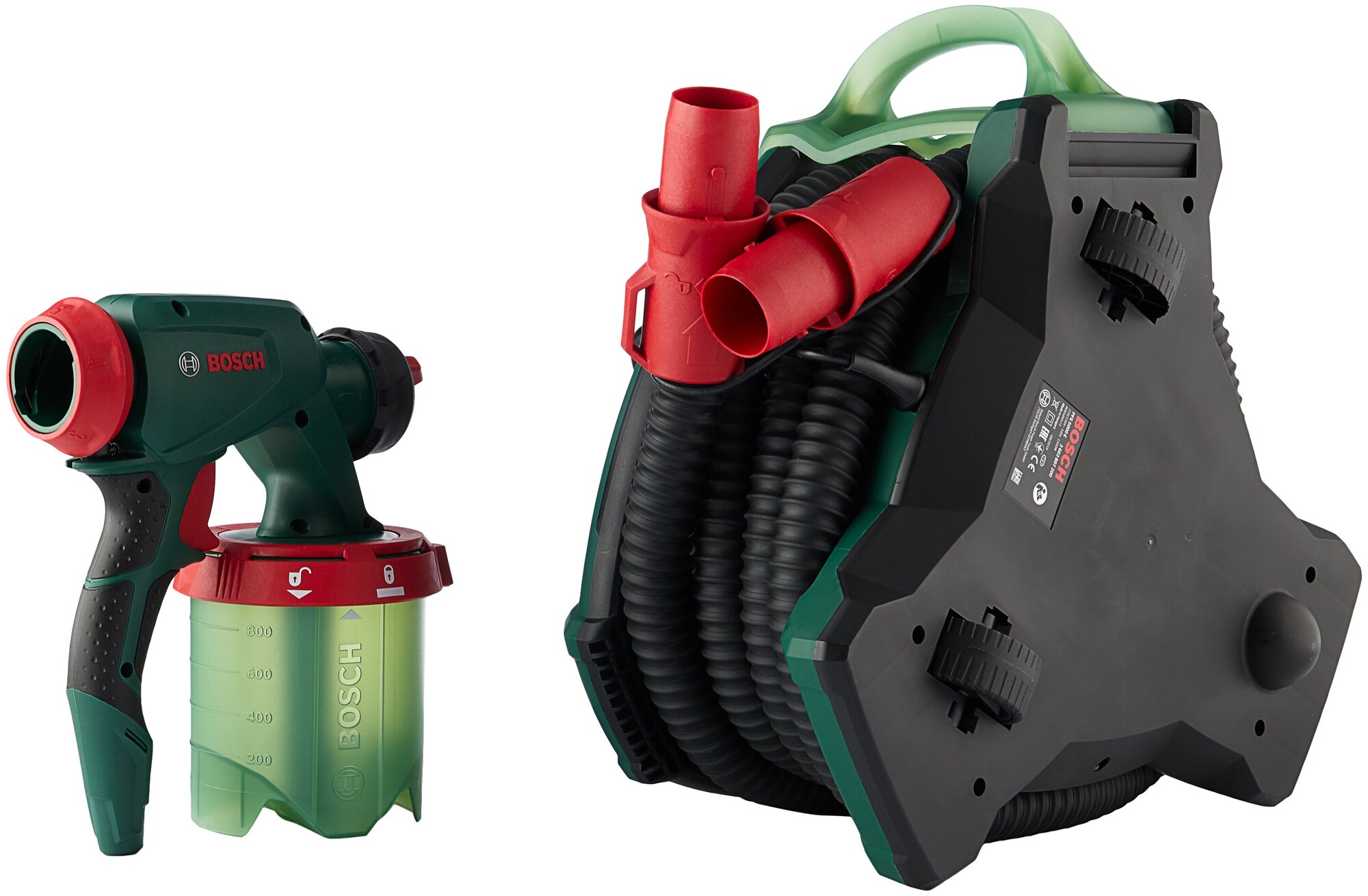 Краскораспылитель Bosch PFS 5000E оснащен мощным двигателем на 1200 Вт. Благодаря 4-метровому шлангу и встроенным колесикам обеспечивается превосходная гибкость и мобильность. Имеется специальный отсек для хранения шланга и насадок. Модель работает по технологии ALLPaint: простое распыление красок любого вида — без разбавления.