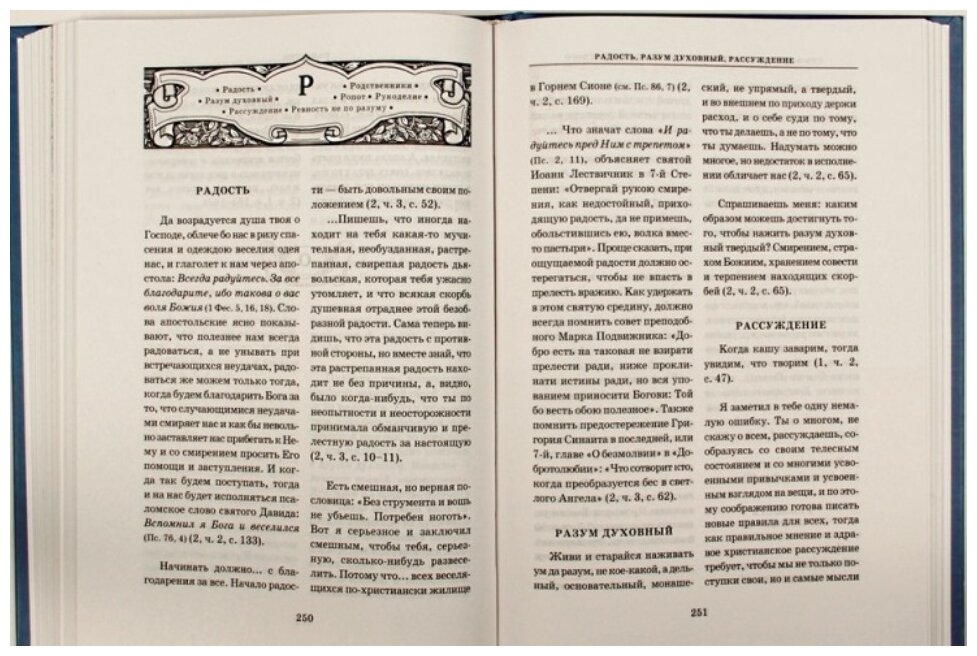 Очень качественное издание и по оформлению, и по содержанию. Книга составлена по письмам Оптинского старца Амвросия и представляет собой ответы на самые разнообразные вопросы, причем материал хорошо структурирован, составлен по алфавиту и содержит разъяснения из жизненных примеров, что значительно упрощает понимание глубокого смысла и помогает легко ориентироваться в богатейшем кладезе мудрости. Книгу смело можно отнести к подарочному варианту с изысканным вкусом оформления. Спасибо издательству за красивый дар всем читателям.