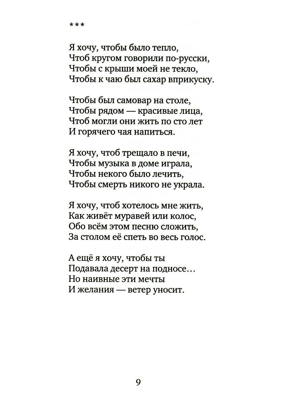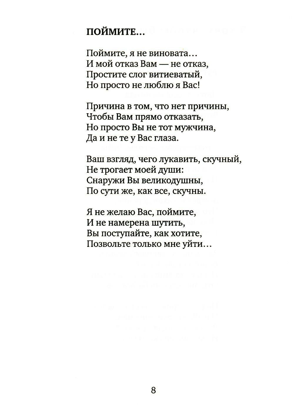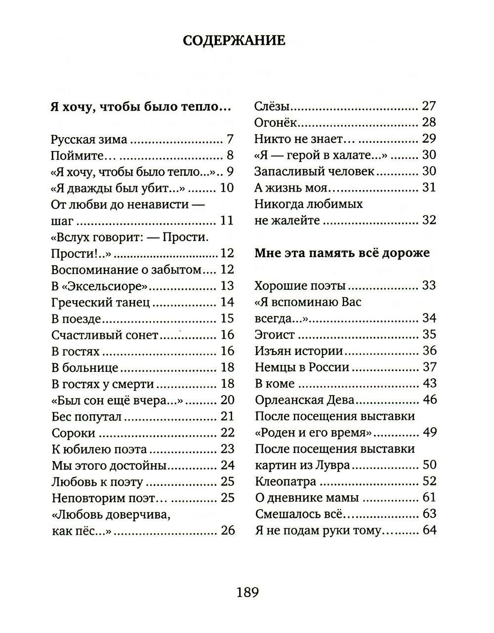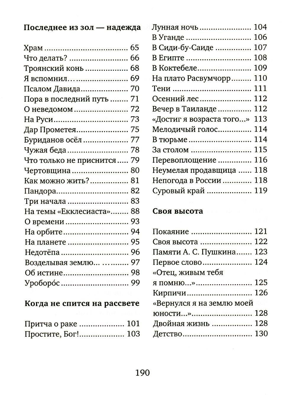 Небольшая книжечка вполне достойных стихов. В основном в подборке произведений в сборнике описываются личные переживания автора. Как правило стихи не длинные 4-5 строф. Минус книги - соотношение цены и качества, они явно не равнозначны. Книга дороговата. Сложно угадать, почему такая крошка стоит так дорого. Обычное оформление, офсетная бумага, отчего у неё такая цена для меня осталось загадкой.