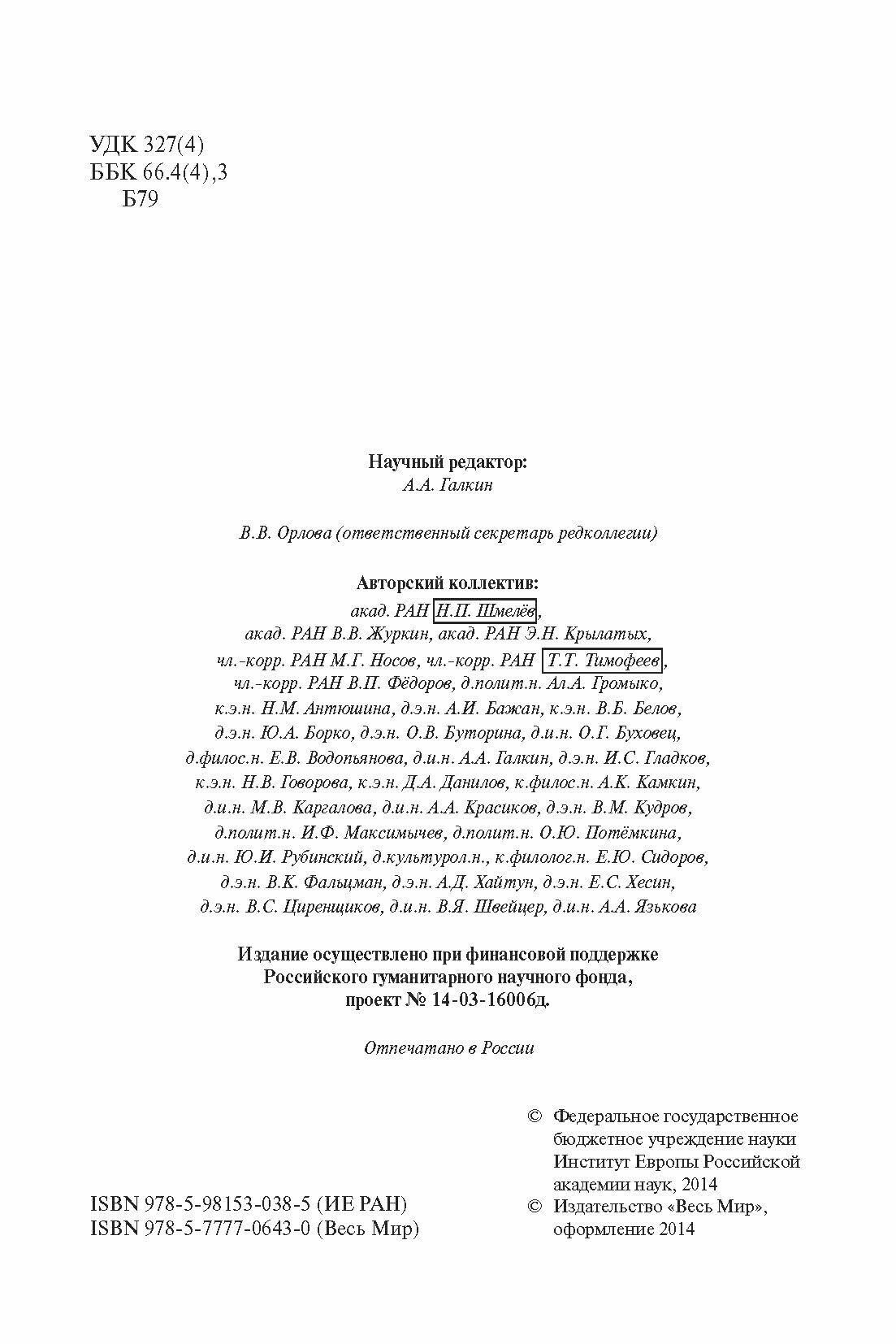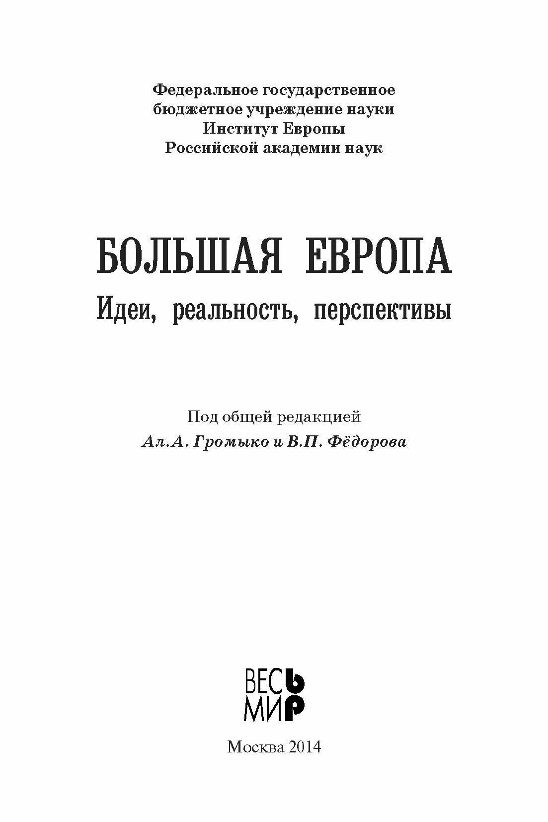 Большая Европа. Идеи реальность перспективы (Шмелев Николай Петрович, Федоров Валентин Петрович, Антюшина Наталья Федоровна); Весь мир, 2014
