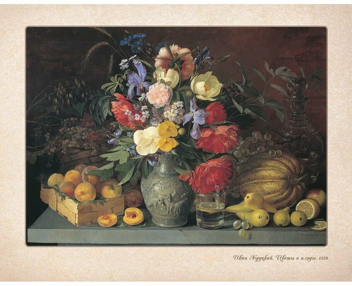 .С 1830 года И. Хруцкий учится в Академии и начинает писать свои известные цветы, фрукты, овощи и грибы. Именно за их качественное написание спустя три года после окончания обучения (1836) художнику присваивают звание академика (1839).