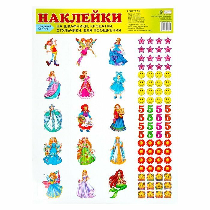 хорошие наклейки-детям в группе понравились-яркие и красочные. но: две наклейки не совпадают с картинками в таблице списка( хорошо, что детей как раз 28...но списки все равно надо будет делать другие...вот задумались, как же назвать каждую принцессу...