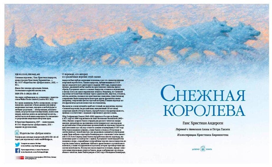Новое издание "Снежной королевы" с потрясающими иллюстрациями Кристиана Бирмингема - без преувеличения самая красивая иллюстрированная версия этой сказки Андерсена: в книге 35 иллюстраций, каждая из которых - настоящий шедевр, в том числе 7 огромных полотен на целый разворот каждое.