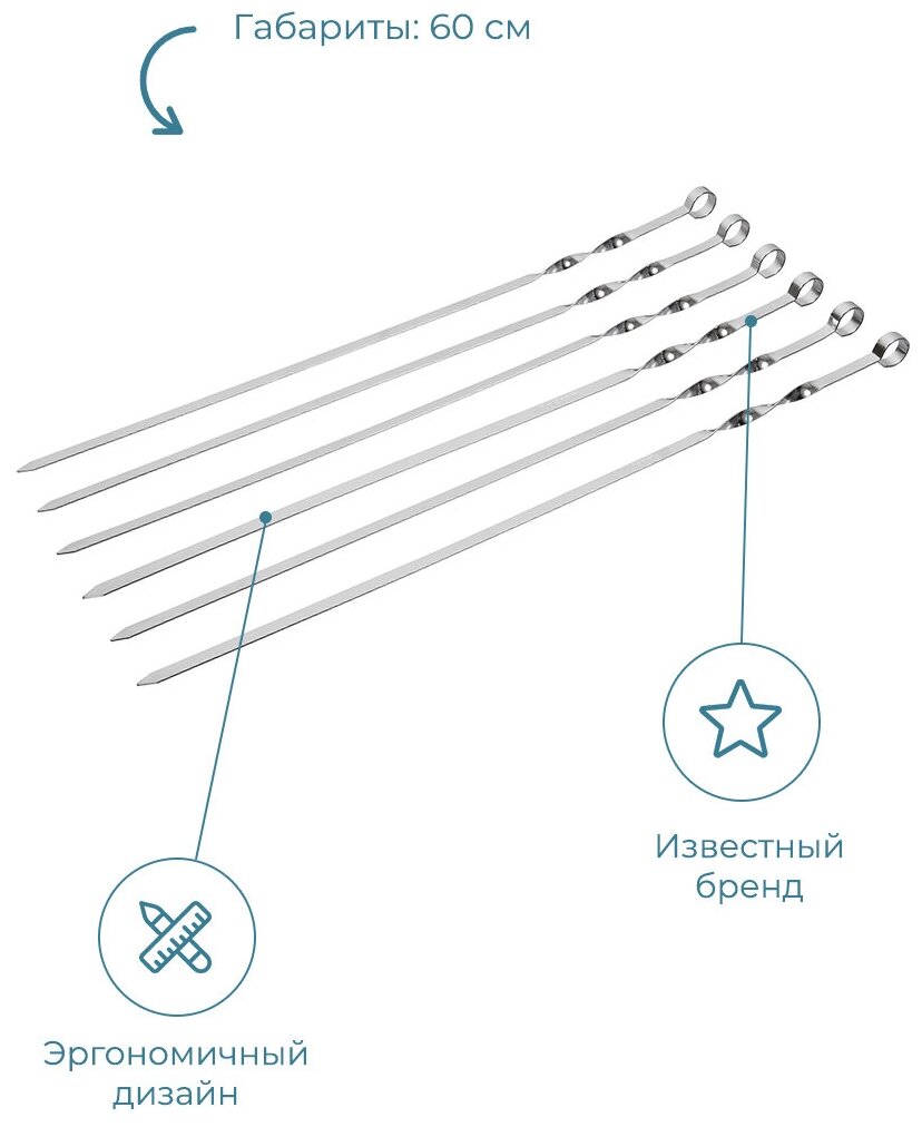 - Набор плоских шампуров 55см, 6 шт. в упак. (BoyScout) обзор 61264