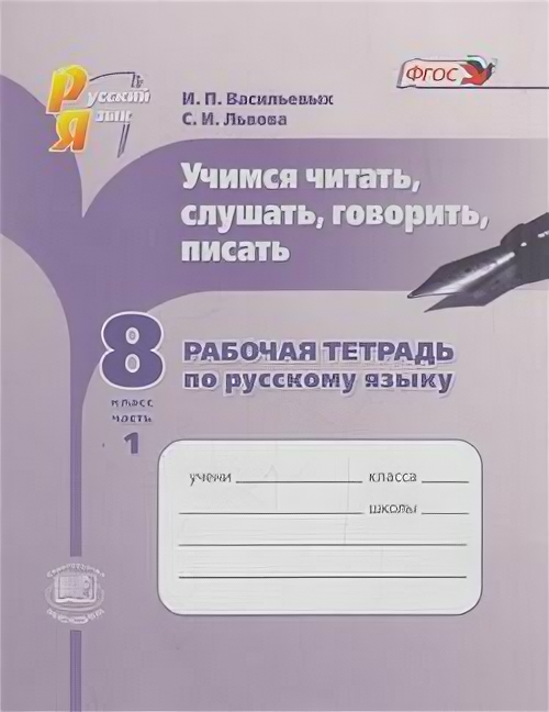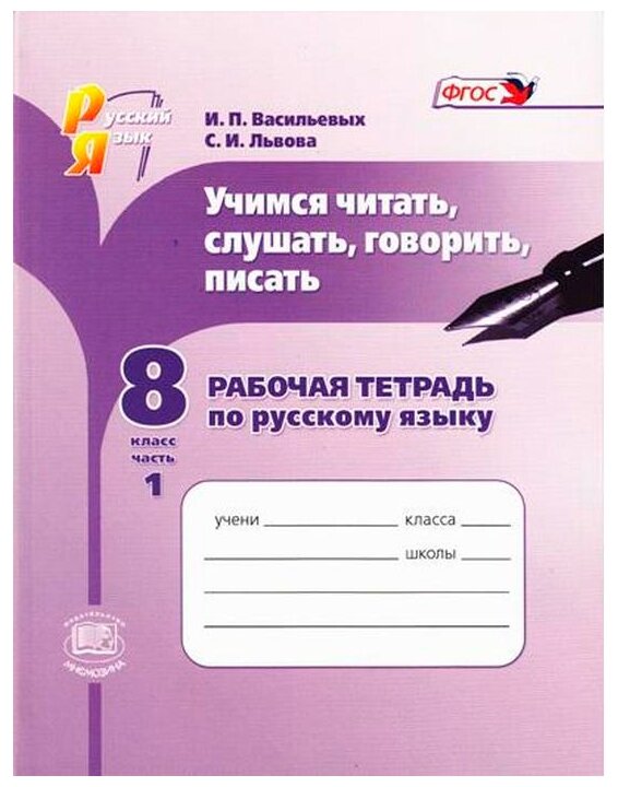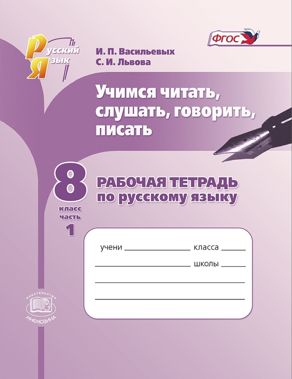 Русский язык. Рабочая тетрадь. Учимся читать слушать говорить. 8 класс. В 2 частях. Ч. 1. (Васильевых Ирина Павловна, Львова Светлана Ивановна); Мнемозина, 2017