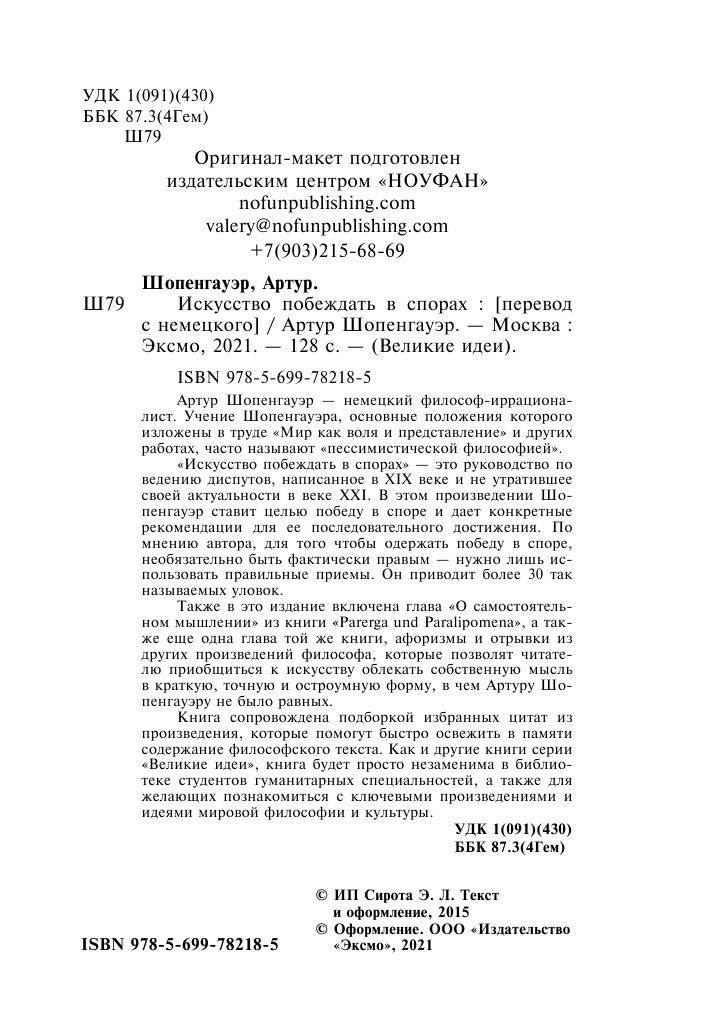 Искусство побеждать в спорах (Артур Шопенгауэр); Эксмо, 1900