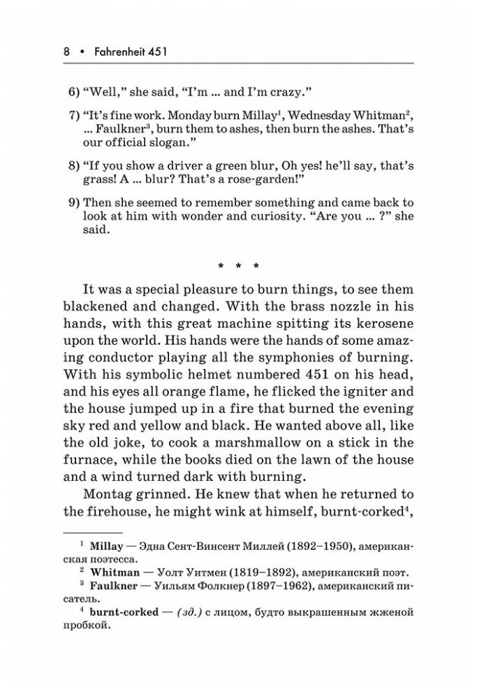 В книге представлен роман-антиутопия Рэя Брэдбери "451? по Фаренгейту" - классика научной фантастики. В романе описан мир будущего, в котором книги безжалостно сжигаются отрядом пожарных, их запрещено читать в тоталитарном обществе. В центре романа - история пожарного Гая Монтага. Ряд трагических событий приводит его к пониманию того, что в жизни человека существуют истинные ценности, и он становится изгоем общества.