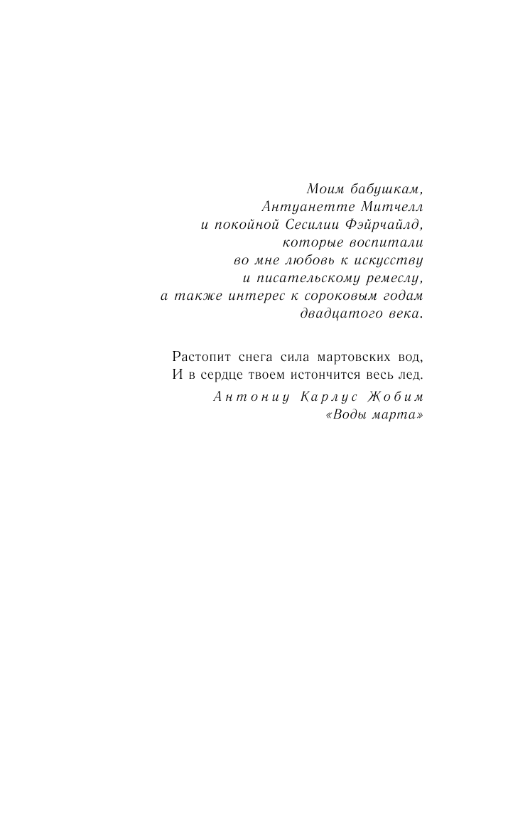 Этой книгой я зачитывалась, как и романом «Ежевичная зима»! В ней тоже есть похожая взаимосвязь между событиями прошлого и современности. В целом романы Сары Джио нравятся своей содержательностью, чувством лёгкости, в них нет пошлости.