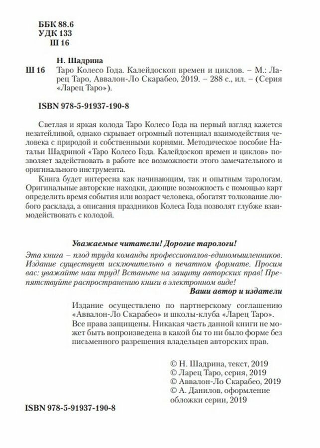 Сервис сравнения цен СкидкаГИД предлагает сравнить цены на товар «Книга: Таро "Колесо Года". Калейдоскоп времен и циклов (Шадрина Наталья Анатольевна); Аввалон-Ло Скарабео, 2022»