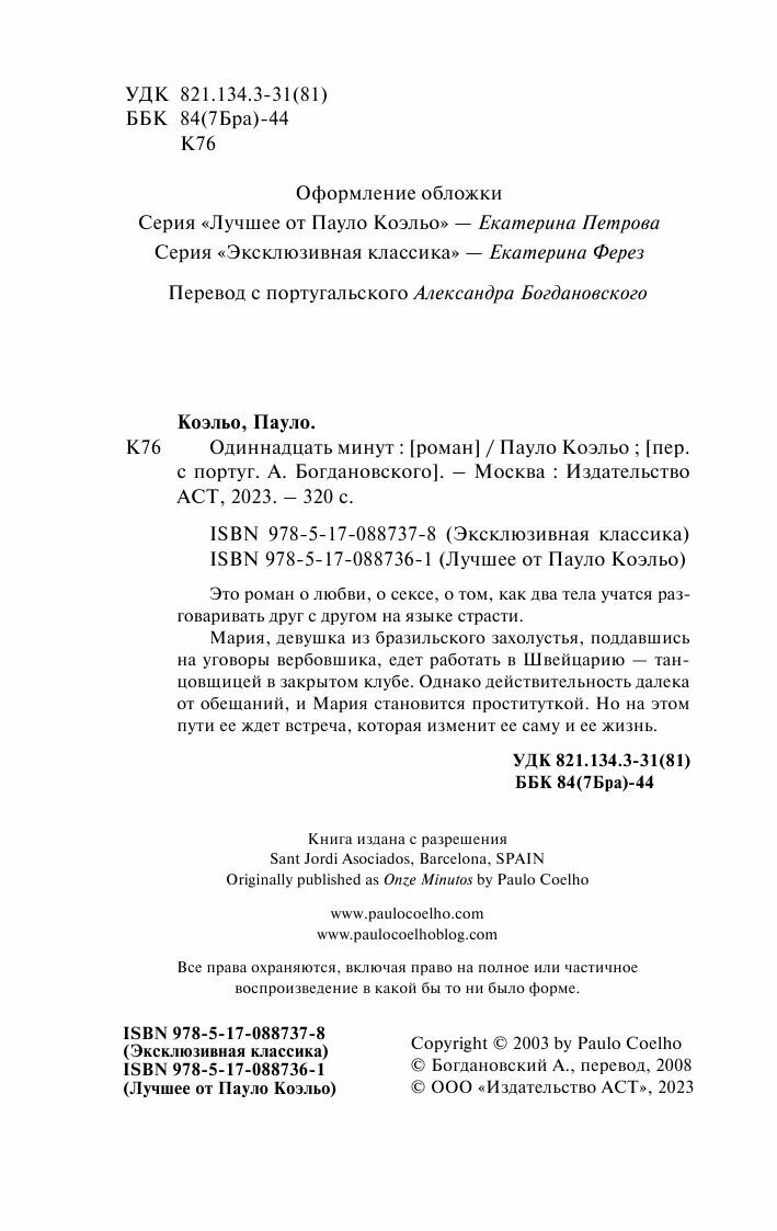 Книга: Одиннадцать минут (Коэльо Пауло); ООО "Издательство Астрель", 2021