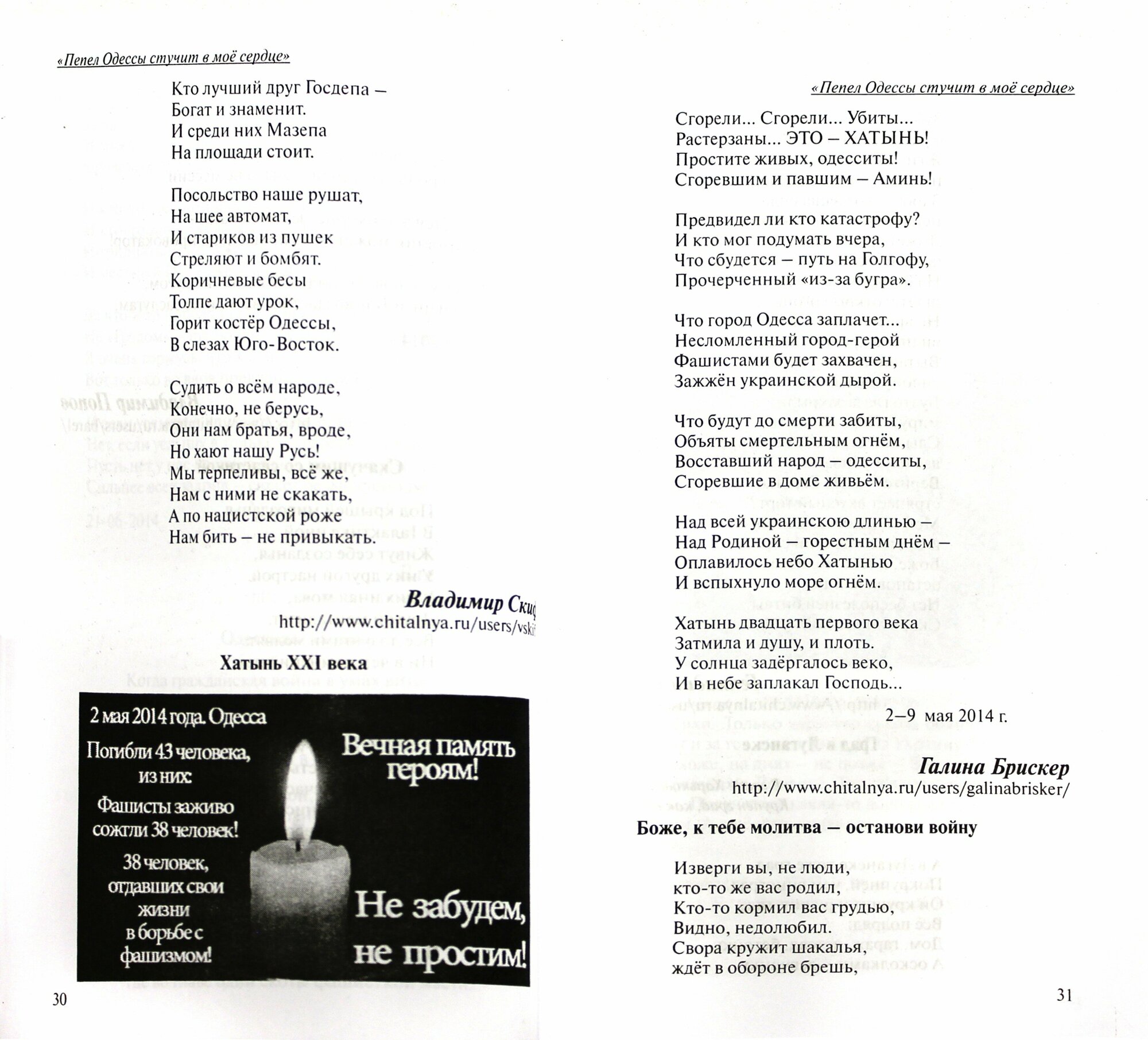 Пепел Одессы стучит в моё сердце (Еськов Александр, Канторович Александр, Скиф Владимир); Клинцовская городская типограф, 2014