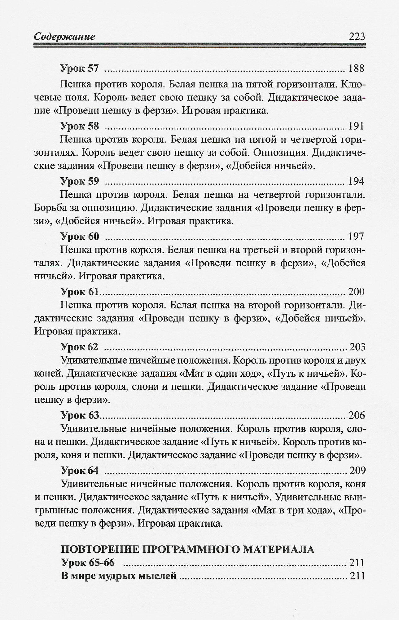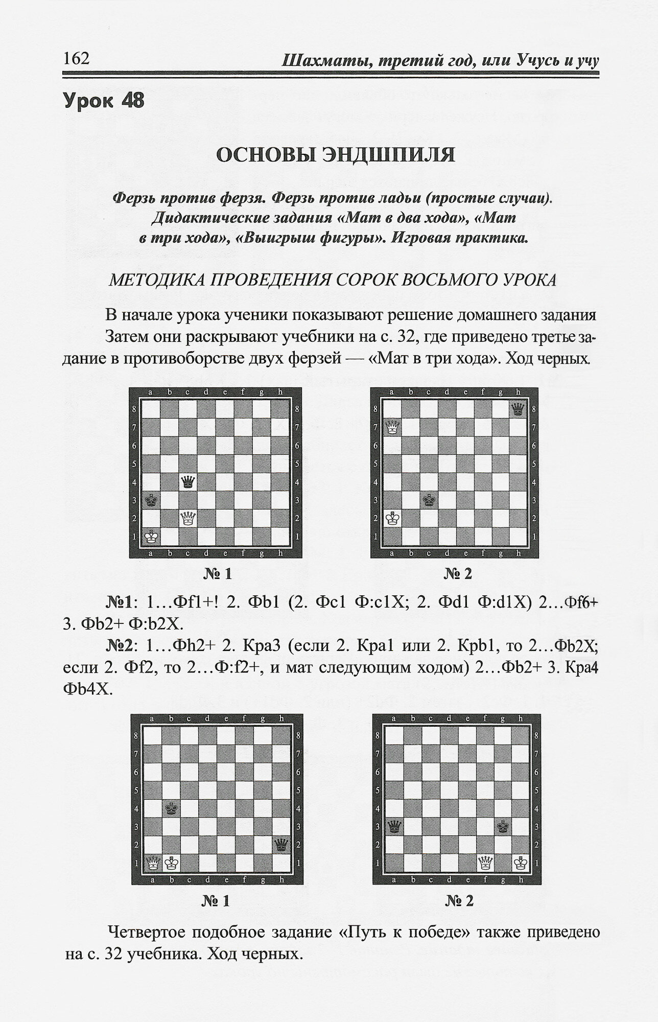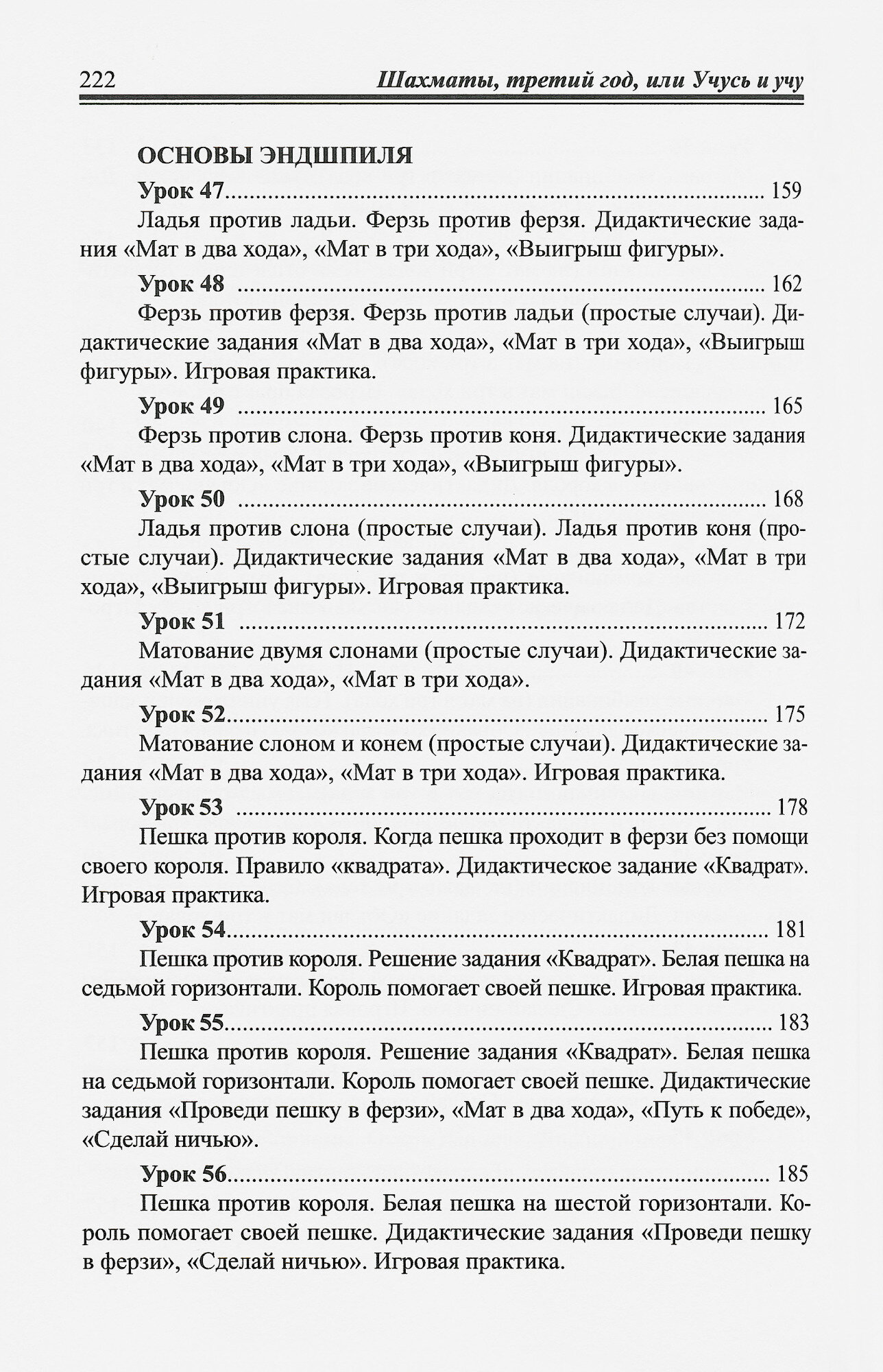 Для педагогов, знакомых с шахматами только по материалам учебно-методических комплектов "Шахматы, первый год" и "Шахматы, второй год", сделаны необходимые разъяснения. В пособии описывается каждый из 66 уроков, приводится большая часть заданий из учебника с решениями.