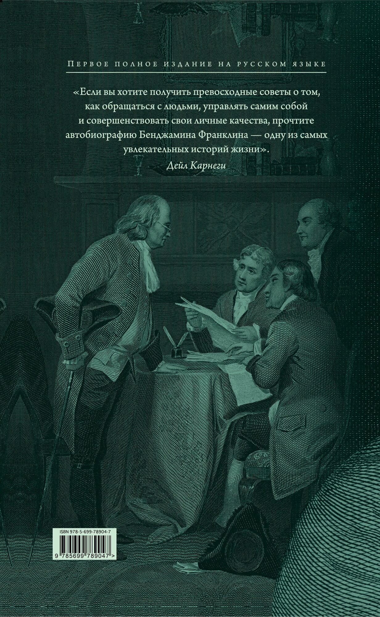 Эта книга устраняет чудовищную историческую несправедливость: она впервые представляет отечественному читателю наследие одного из самых замечательных умов человечества, государственного и общественного деятеля, дипломата, ученого, изобретателя, писателя, философа, бизнесмена — Бенджамина Франклина (1706—1790). Его лицо знакомо всем — это портрет, растиражированный несчетное количество раз на главной денежной купюре США; его афоризм «Время — деньги» знают даже те, кто ничего не знает; а его «Автобиография» давно стала настольной книгой для большинства успешных людей, многие из которых уже успели войти в когорту великих личностей. «Если вы хотите получить превосходные советы о том, как обращаться с людьми, управлять самим собой и совершенствовать свои личные качества,— сказал однажды Дейл Карнеги,— прочтите автобиографию Бенджамина Франклина — одну из самых увлекательных историй жизни». Бенджамин Франклин — один из отцов-основателей США и единственный из них, чья подпись стоит под Декларацией независимости, Версальским мирным договором и Конституцией — тремя документами, определившими ход истории не только Соединенных Штатов, но и всего мира. А еще Франклин изобрел громоотвод, кресло-качалку, печку-буржуйку, кухонную плиту, придумал летнее время и создал множество других полезных вещей. Кроме первого полного русского перевода автобиографии, в это издание вошли сочинения Бенджамина Франклина разных лет: от «Трактата о свободе и необходимости, удовольствии и страдании», написанного юным автором в 19 лет, — до сатирического памфлета «О работорговле», работу над которым 84-летний великий американец закончил за три недели до своей кончины. И наконец, подлинным украшением издания стали сотни великолепных иллюстраций, благодаря которым читателю гарантирован «эффект погружения» в эпоху, в которой жил и творил Бенджамин Франклин.