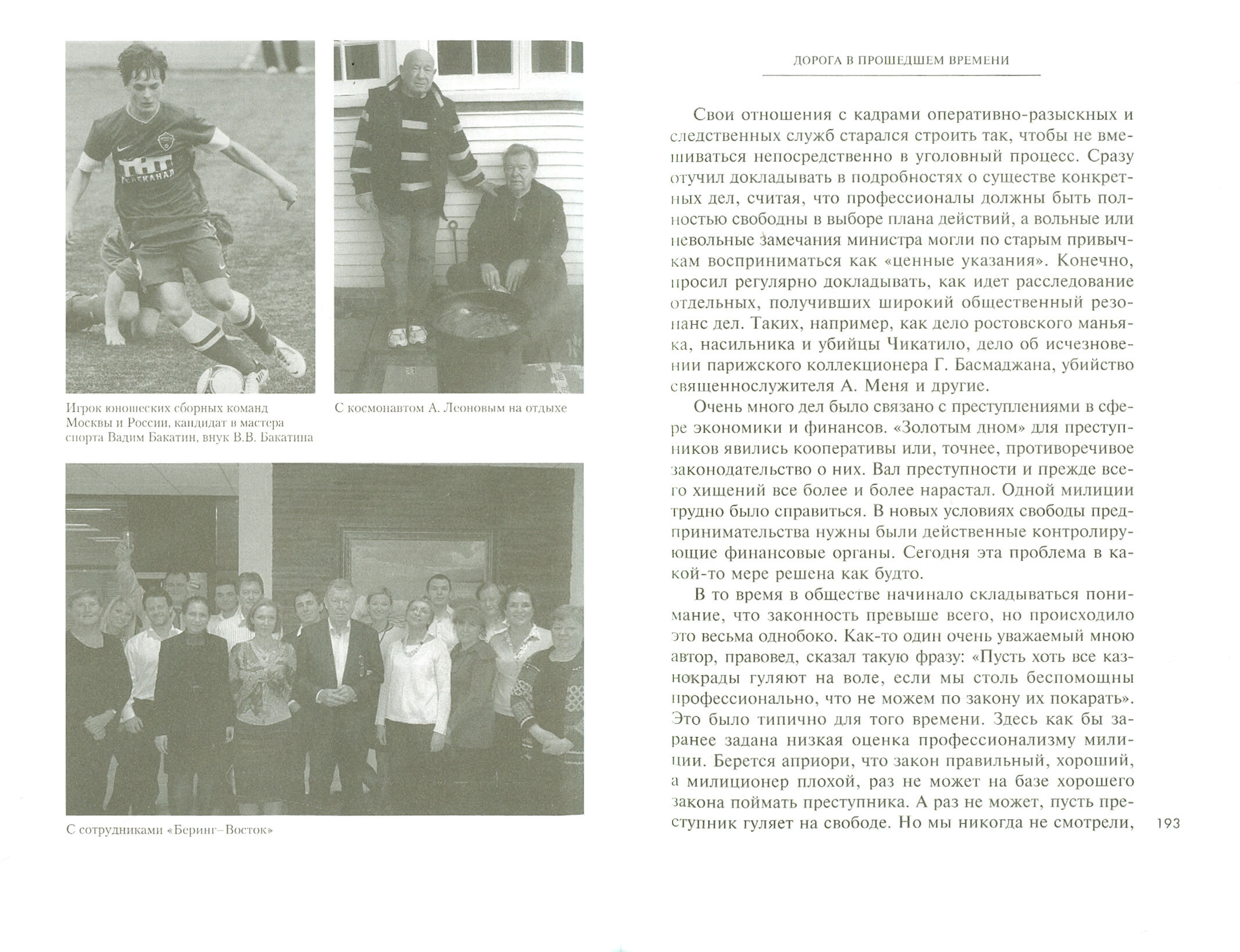 Дорога в прошедшем времени. Мне было очень интересно все это читать, так как я это время помню, это было время моей молодости. Я помню, как мы были в шоке, когда началась перестройка, и в еще больше шоке от распада Союза. Много было хорошего.... При всей нынешней свободе нет стабильности, уверенности, а тогда все это было. Вадим Бакатин конечно не только об этом пишет, он многие события анализирует, пытается разобраться. что и зачем случилось.
