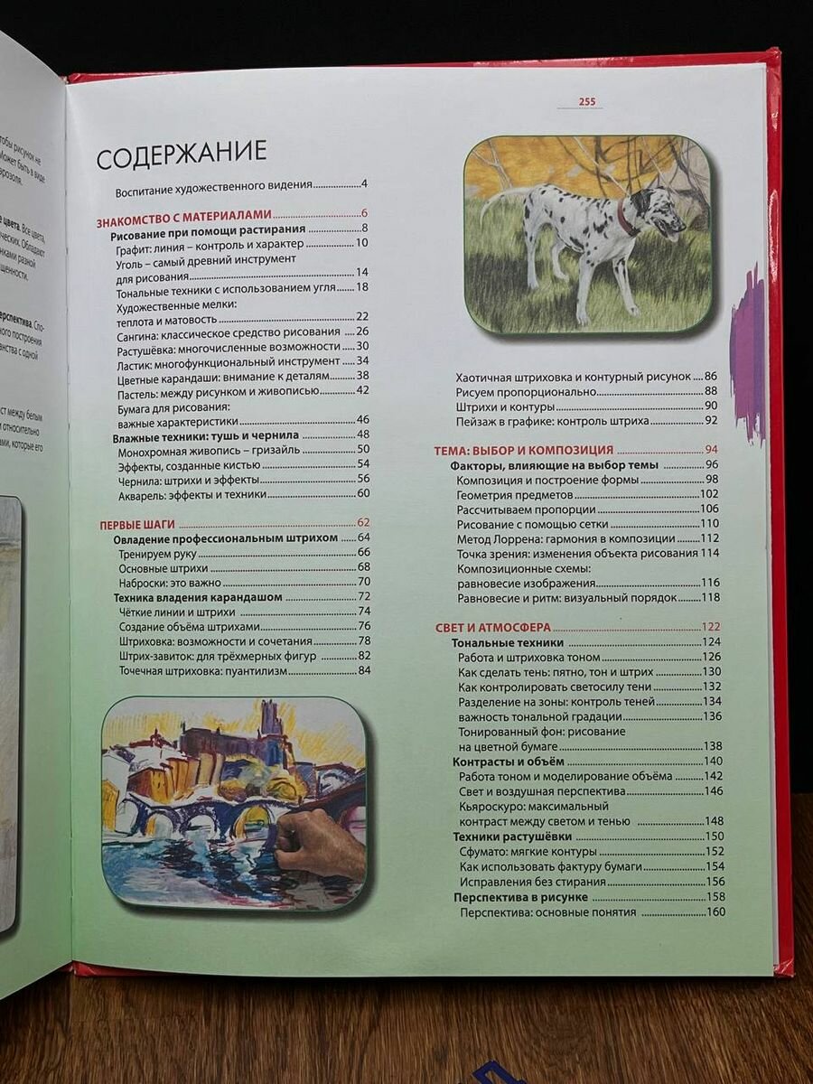 Доступное и содержательное изложение, снабжено подробными обучающими иллюстрациями. Книга сгруппирована по разделам: пейзажи, натюрморты, животные, архитектура, человек. Рисование посредством карандаша, пастелей, туши, угля, сангины, акварели, кроме того приводятся различные приемы и техники. Полезное и наглядное издание для новичков.