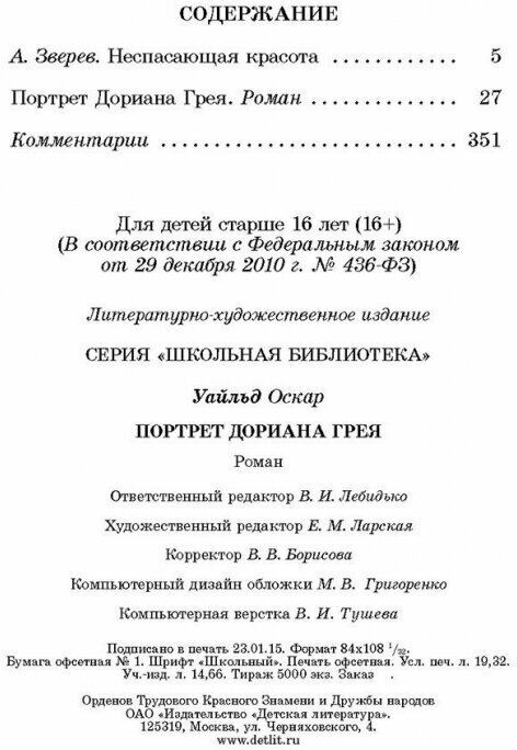 Книга: Портрет Дориана Грея (Оскар Уайльд); Издательство «Детская литература», 1890