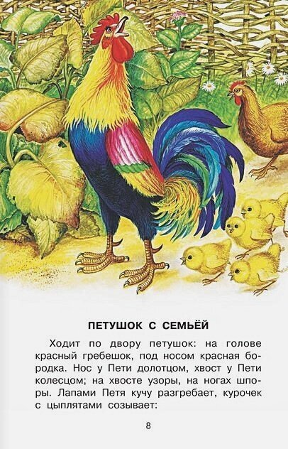 тут и небольшие рассказы-зарисовки (если можно так назвать) о животных, и сказочки о животных, и рассказы, описывающие какие-то события из деревенской жизни. Некоторые из них совсем коротенькие, но даже в нескольких фразах до ребенка доносится определенная мораль: это хорошо, а это не очень. Полагаю, в этом и состоит педагогический талант Ушинского: способность в предельно простой форме донести до маленького человечка очень важные и нужные мысли. Думаю, что даже если ребенок сам умеет читать, эта книга потребует некоторых пояснения от взрослых: в ней описаны события и быт уже несколько далекой от нас эпохи. Для детей, особенно маленьких, некоторые моменты могут быть не совсем понятны.