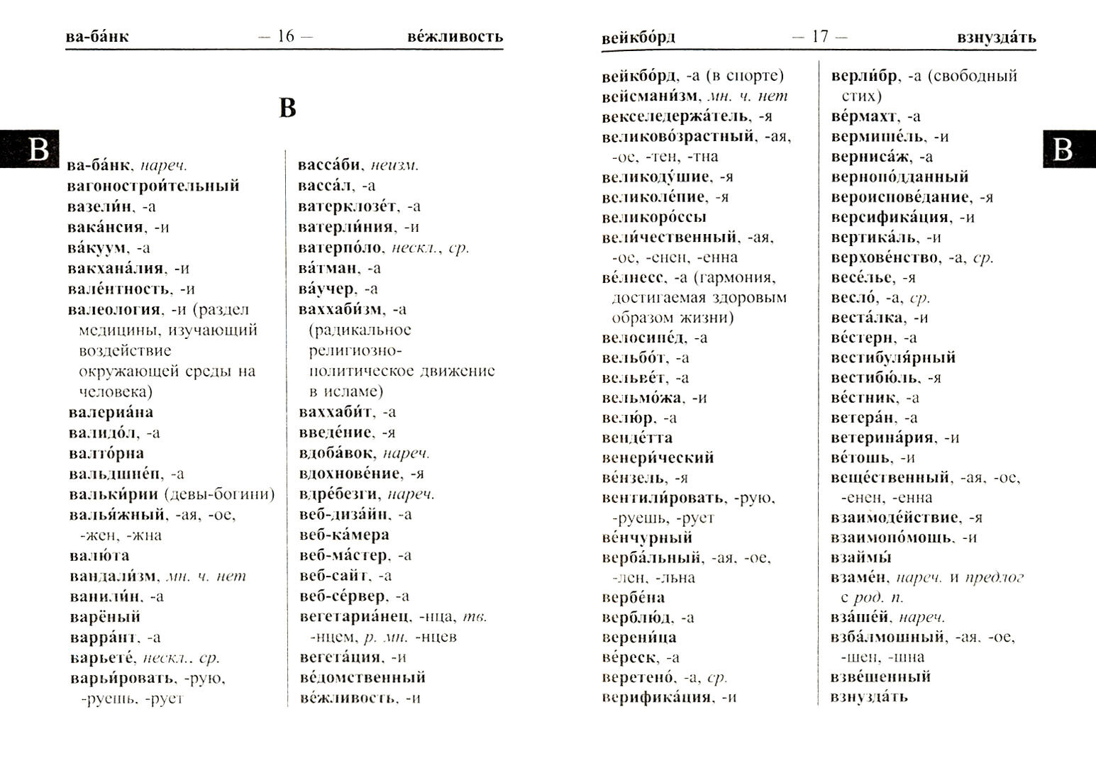 Орфографический словарь содержит около 20 000 словоформ. В нем широко представлена самая распространенная лексика. Также в издании приведены слова из научной лексики, которые при написании могут вызвать затруднения.