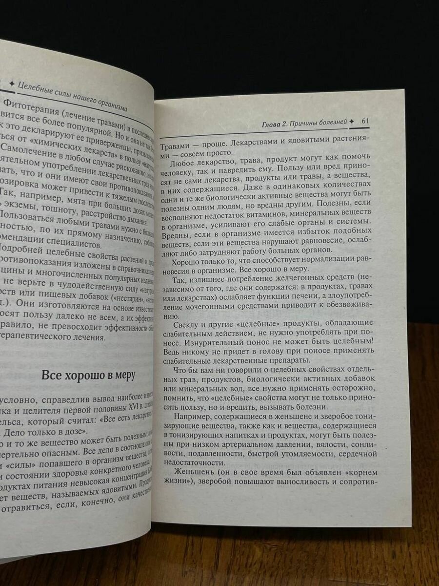 Книга адресована всем, кто хочет разобраться в вопросах оздоровления, понять, как работает наш организм. В книге раскрыты тайные знания в борьбе с болезнями, рассказано о том, как наблюдать за своим здоровьем и своевременно принимать необходимые меры. Книга поможет определить причины недугов, противостоять некачественному лечению, выбрать наиболее подходящее средство оздоровления, диету, образ жизни.