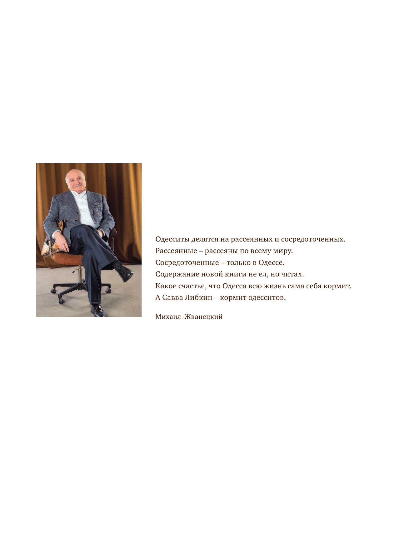Красочное подарочное издание на мелованной бумаге. В своей новой книге любимец публики и настоящий одессит Савелий Либкин собрал для вас рецепты одесского стола от Привоза до Дерибасовской, щедро приправил их воспоминаниями самых знаменитых одесситов (и своими, конечно же), сдобрил невыдуманными историями, где главную роль играет одесская бабушка, для которой в любой ситуации главное, чтобы внук"вкусно покушал", и подал это все с настоящим одесским юмором.