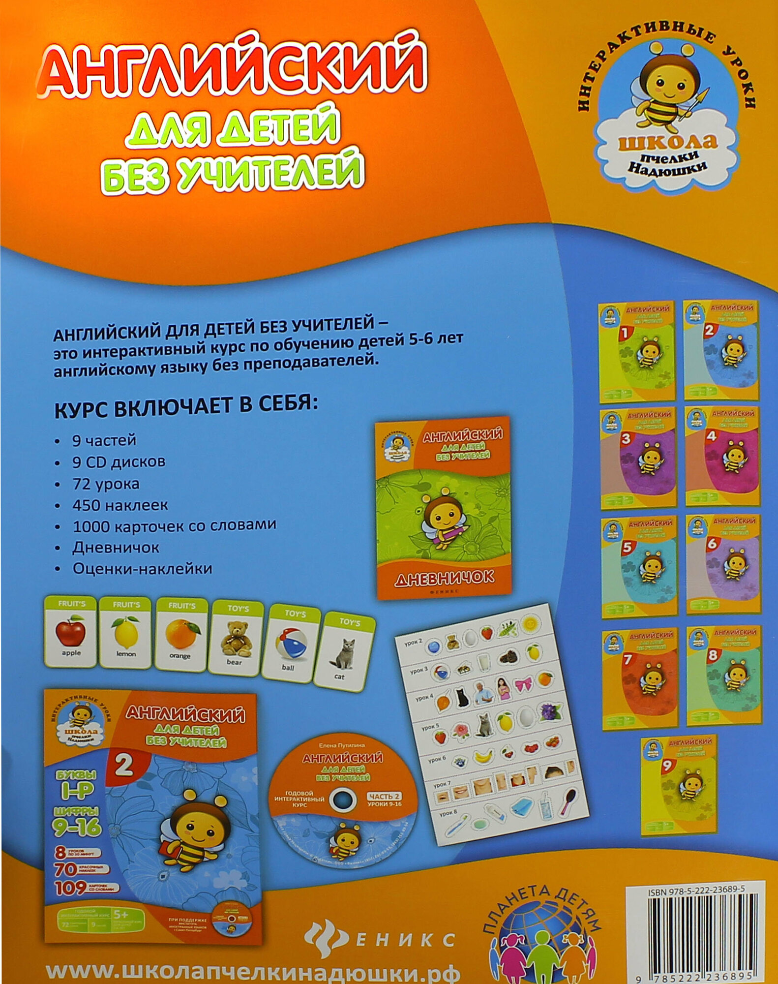 Красочные иллюстрации, увлекательный игровой формат, очаровательная пчелка Надюшка, базовые фразы - все, что нужно, чтоб ваш малыш мог потихоньку научиться читать, писать и говорить на английском языке.
