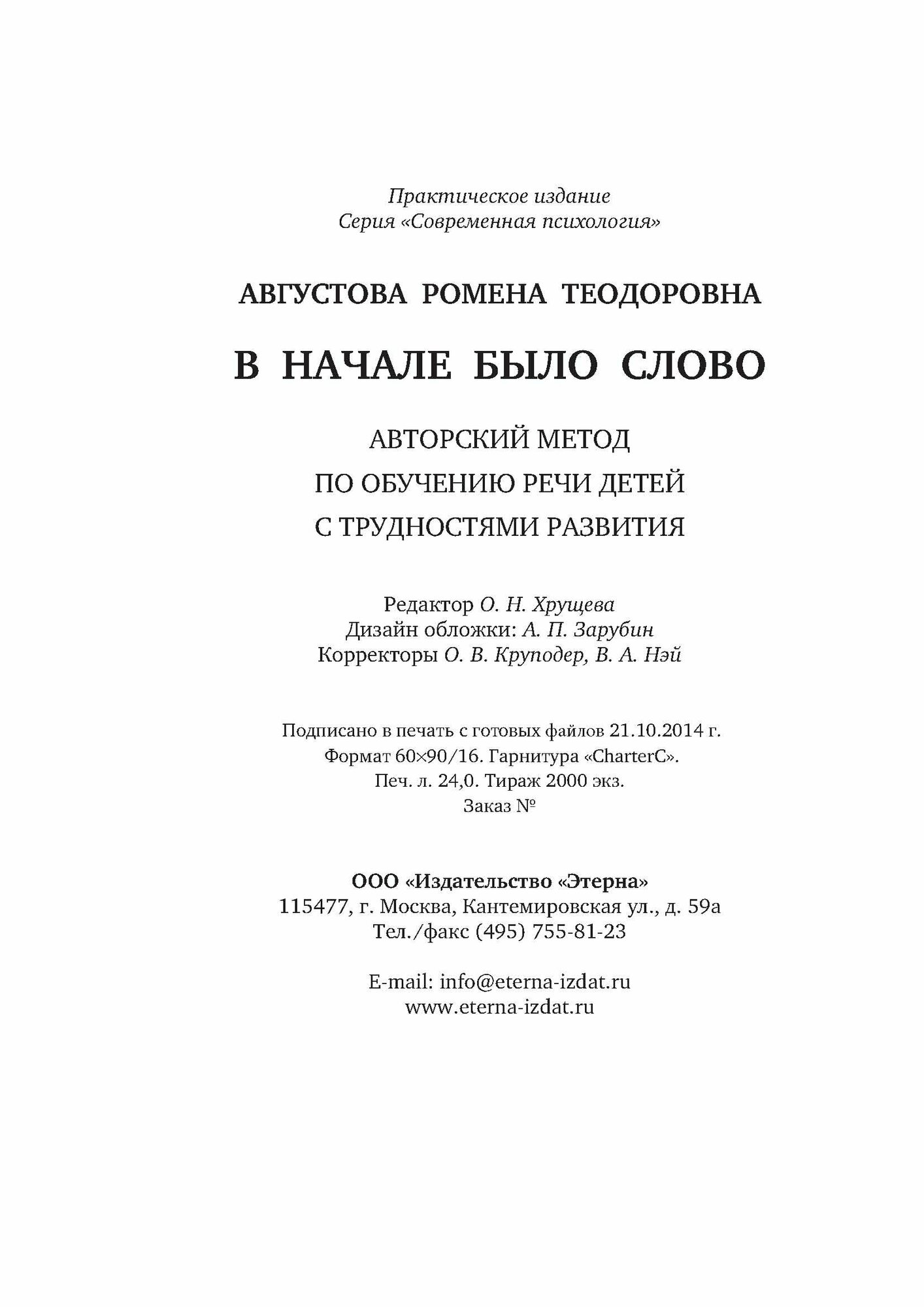 В начале было слово. Авторский метод по обучению речи детей с трудностями развития (Ромена Августова); Этерна, 2015
