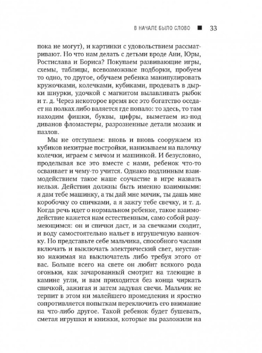 Купила книгу под действием первого впечатления – была очарована авторским слогом и словом! Автор демонстрирует такую безмерную и одновременно мудрую любовь к детям, что невольно начинаешь задумываться над тем, а что ты вкладываешь в свое отношение к ребенку. Второй причиной, по которой приобрела книгу, является собственный опыт работы с детьми, имеющих подобные нарушения (аутизм, синдром Дауна, задержки речевого развития любого генеза, и др.). Надо сказать, что специалистов, работающих в этой области сегодня немало, но результат – развитие речи – получается и достигается далеко не у всех. И я всегда думала, что результативность работы логопеда, дефектолога, специального педагога, клинического психолога определяется не столько методикой, сколько теми идеологическими установками, психологическими «настройками», или иначе – общим отношением взрослого к интимным взаимодействиям в паре «ребенок – Слово», и книга Ромены Теодоровны Августовой – доказательство тому… Можно ли этому научить? И да, и нет. Да, потому что, слава Богу, появляются вот такие книги с подробным описанием – что делать, как делать, куда смотреть, на что обращать внимание. Нет, потому что должна быть еще вот эта искра от Бога, о которой в своей рецензии упомянул Владимир Леви.