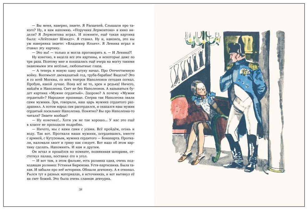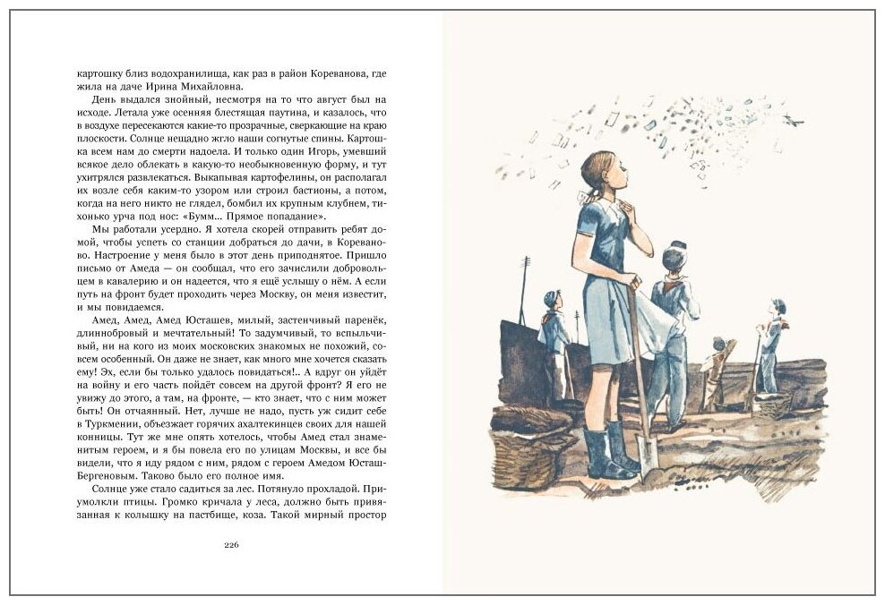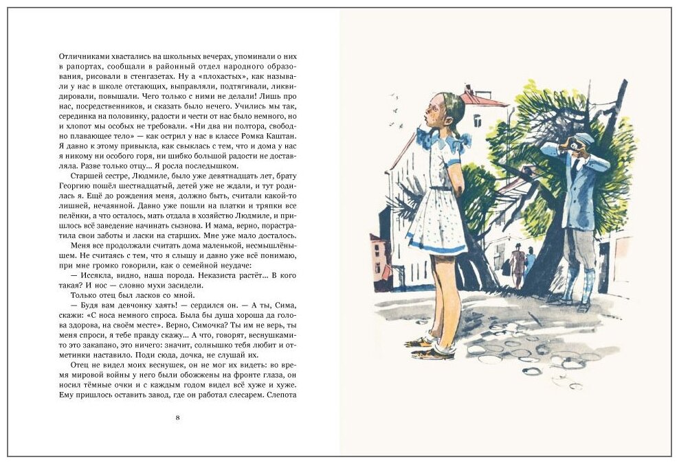 Тем более, на белоснежной бумаге и с такими эмоциональными, живыми иллюстрациями Гальдяева. И хотя главная героиня в этой книге - девочка, мой сын читал эту повесть много раз. Это честная книга о довоенном- военном детстве и юности, очень светлая, с известной долей романтики. Есть в ней и первая влюбленность, и первые разочарования, есть героические страницы, есть обиды… Все есть, как в жизни, только нет скуки.