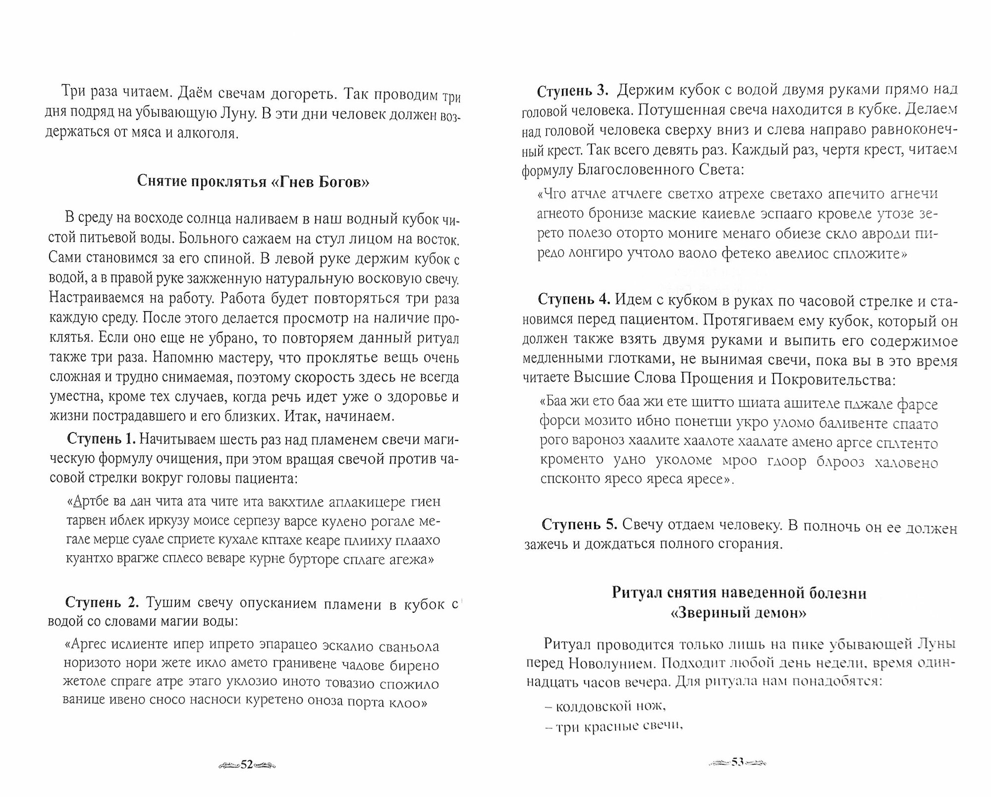 Приобретение довольна, книга интересная. Описывается какой баланс сил должен иметь маг, чтоб ритуалы исполнялись как нужно. Книга - сборник различных ритуалов, как на нанесения негатива как на и благое дело, но для многих требуются предметы, которые сложно достать, все тексты не на русском языке, но написанные по-русски. Куда и как ставить ударения? Новичкам точно не подойдет! Книга для тех, кто уже силен в магии и хочет пополнить копилку своих ритуалов от другого мага, перенять опыт.