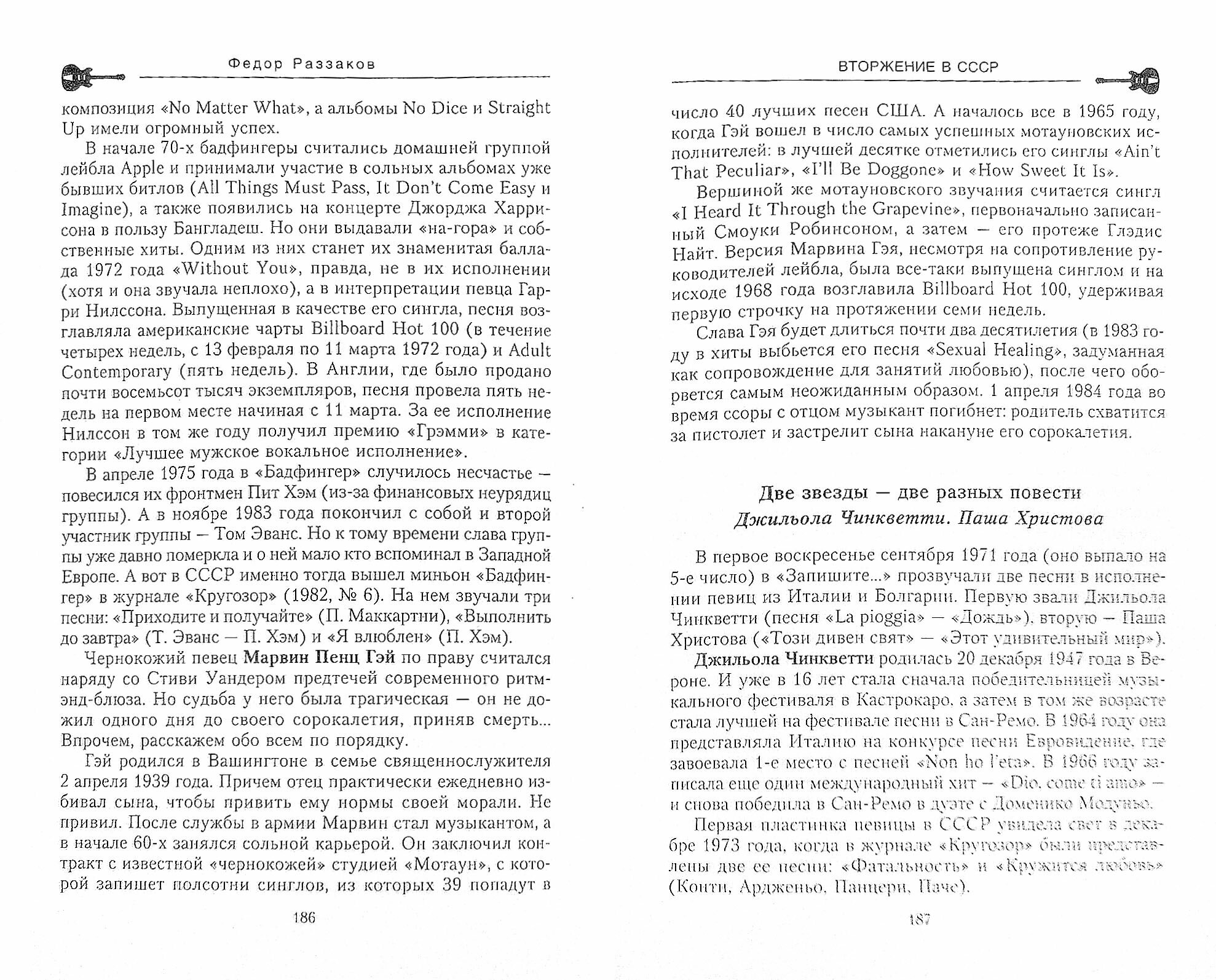 Честно сказать, книжку я полистал и меня поразили музыкальные знания автора. Оказывается в группе Uriah Heep на смену Дэвида Байрона пришел Дэвид Ковердейл, а на альбоме "The Wall" группы Pink Floyd произносятся строчки "Брежнев захватил Афганистан". Спешу отметить, что Дэвид Ковердейл никакого отношения к Uriah Heep не имел, его голос можно услышать в группах, где он был солистом, это Deep Purple и Whitesnake. Строчки "Брежнев захватил Афганистан" звучат на альбоме Pink Floyd "The Final Cut". После такого перелистывания меня сразили познания автора и пропал полный интерес к книге!