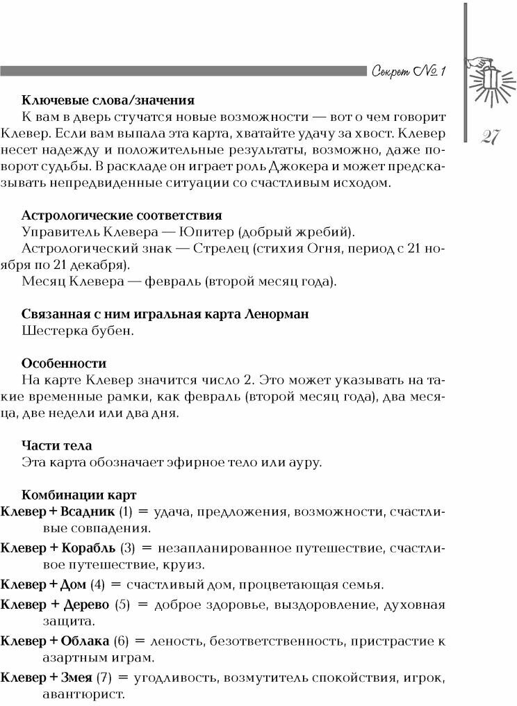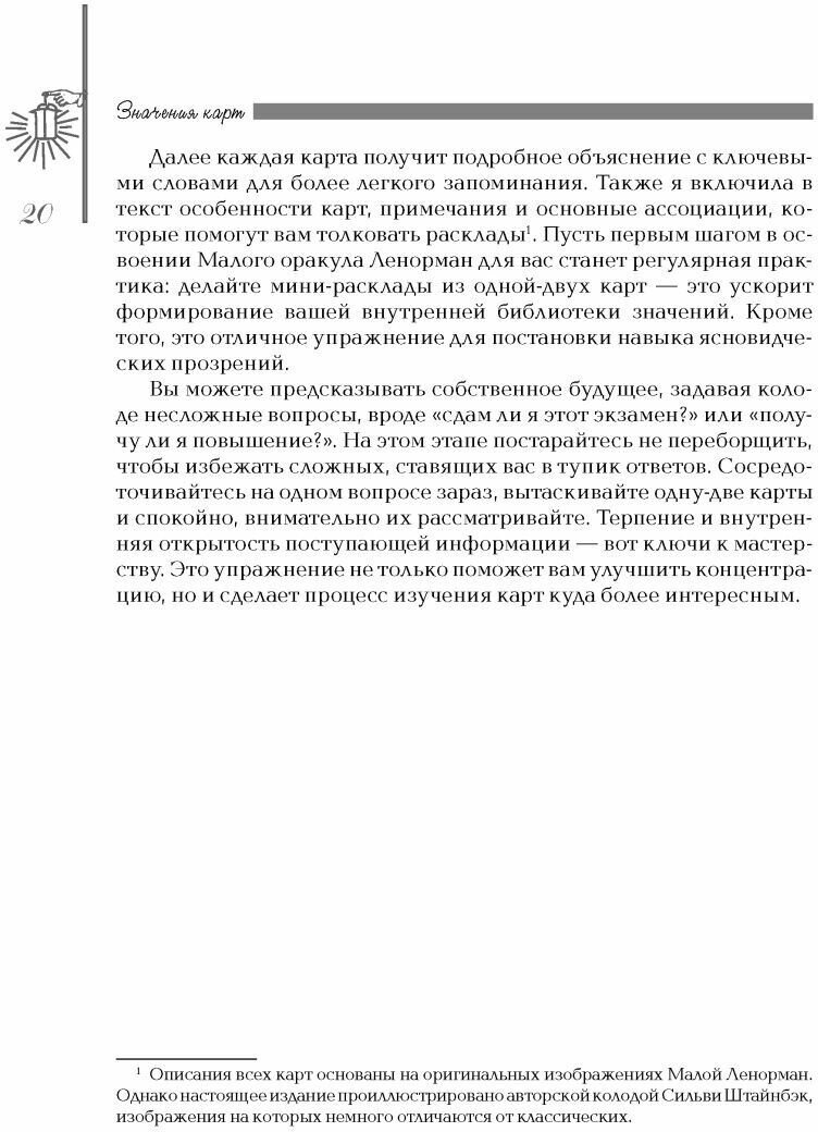 Автор объясняет как смотреть по Ленорман вопросы отношений, бизнеса, денег, здоровья, духовной жизни.
