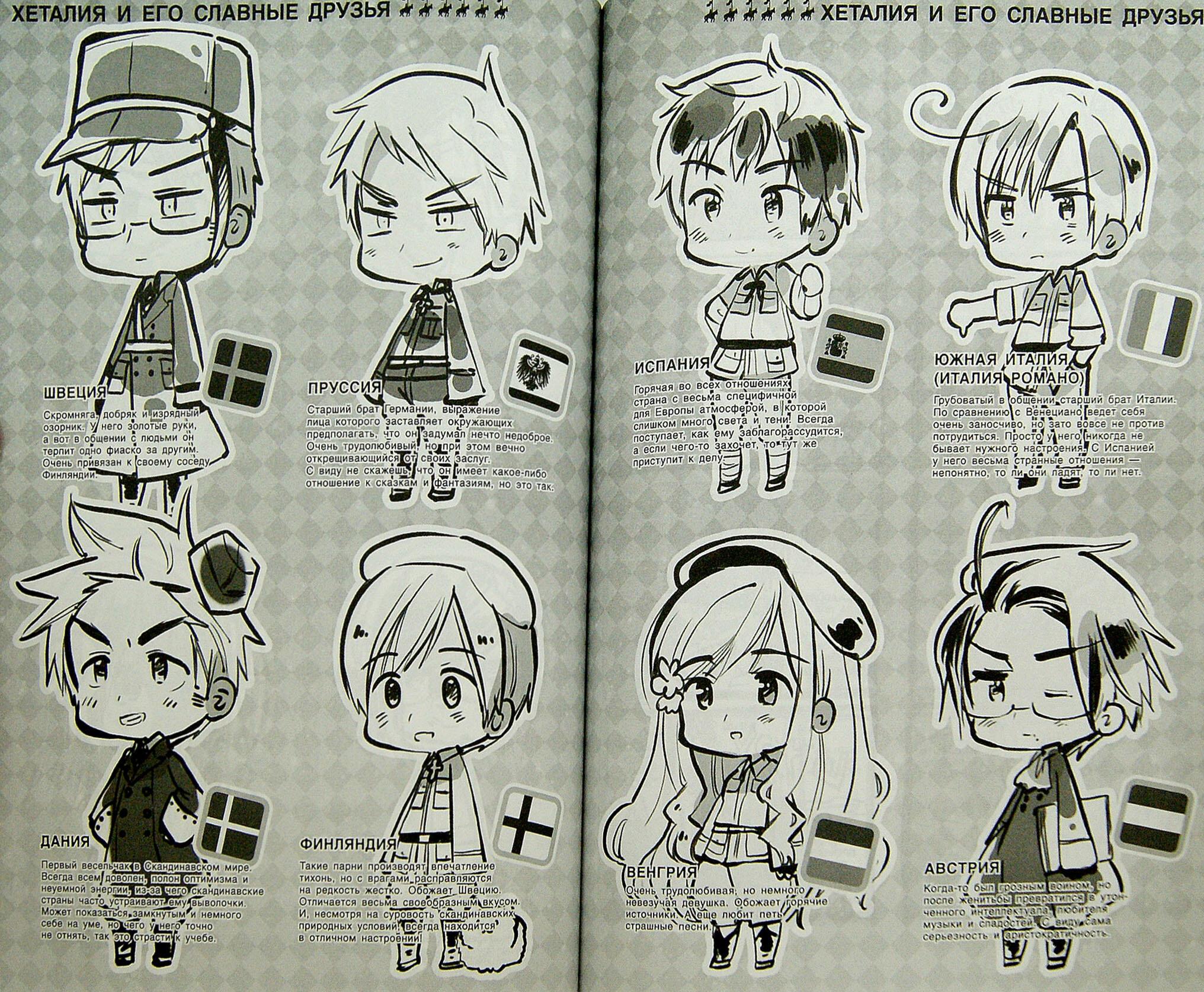 Воистину, мировая история становится в сто раз интереснее, когда она показана через взаимоотношения персонажей, олицетворяющих собой 40 стран-участников мирового политического процесса. И особенно - если в характерах героев так удивительно точно и узнаваемо переданы черты представляемых ими наций. Манга Химаруи Хидэкадзу заставляет по-новому взглянуть на события, происходившие в мире на протяжении более чем двухсот лет, и либо задуматься над судьбами человечества, либо посмеяться от души.