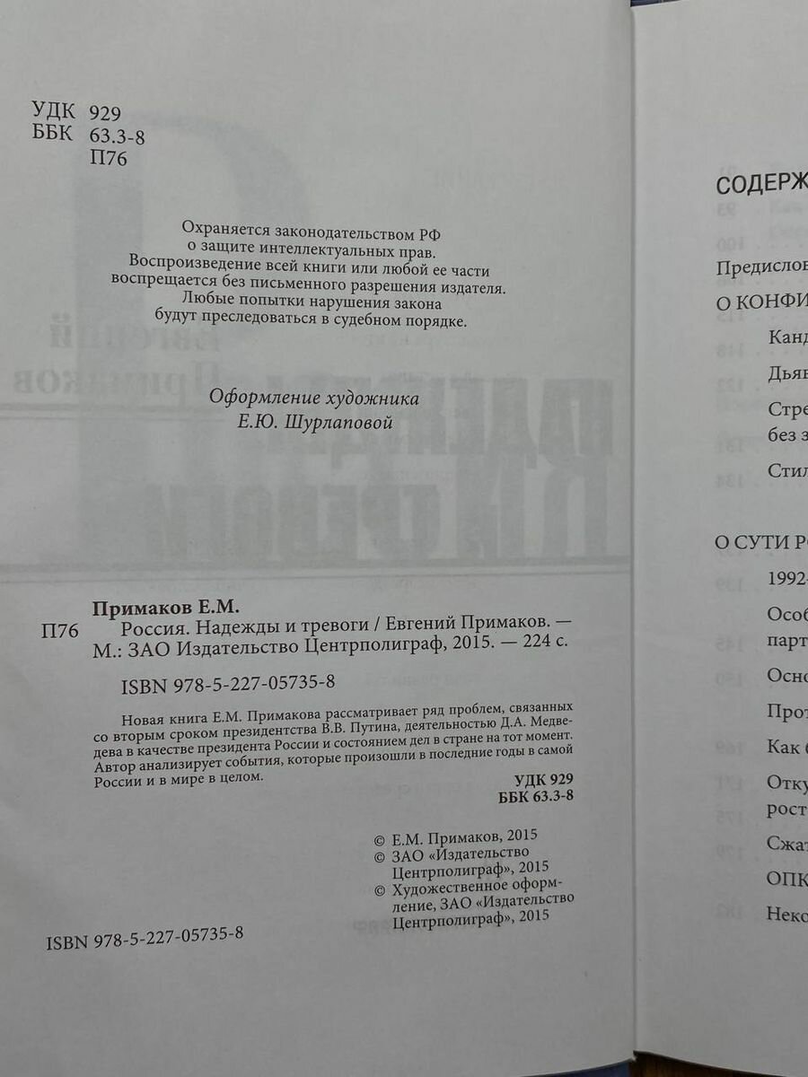 Россия. Надежды и тревоги (Примаков Евгений Максимович); Центрполиграф, 2015