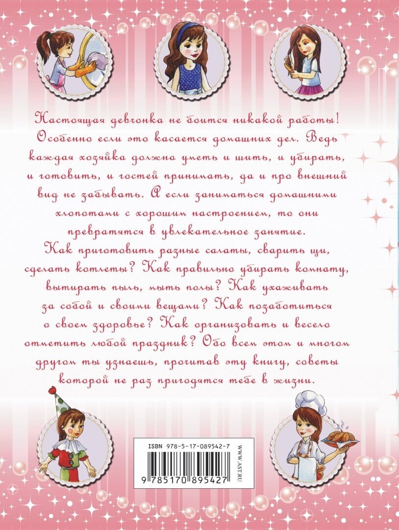 Очень интересная и познавательная книга. Замечательный подарок для девочки! Яркое, красивое оформление, бумага плотная, матовая. Текст сопровождается понятными картинками, приводится большое количество рецептов, советов по ведению домашнего хозяйства. Есть отдельная глава о здоровье, спорте, о том, что надо делать, чтобы выглядеть опрятной и аккуратной. Возрастная категория, на мой взгляд, - для девочек от 11 лет и старше.