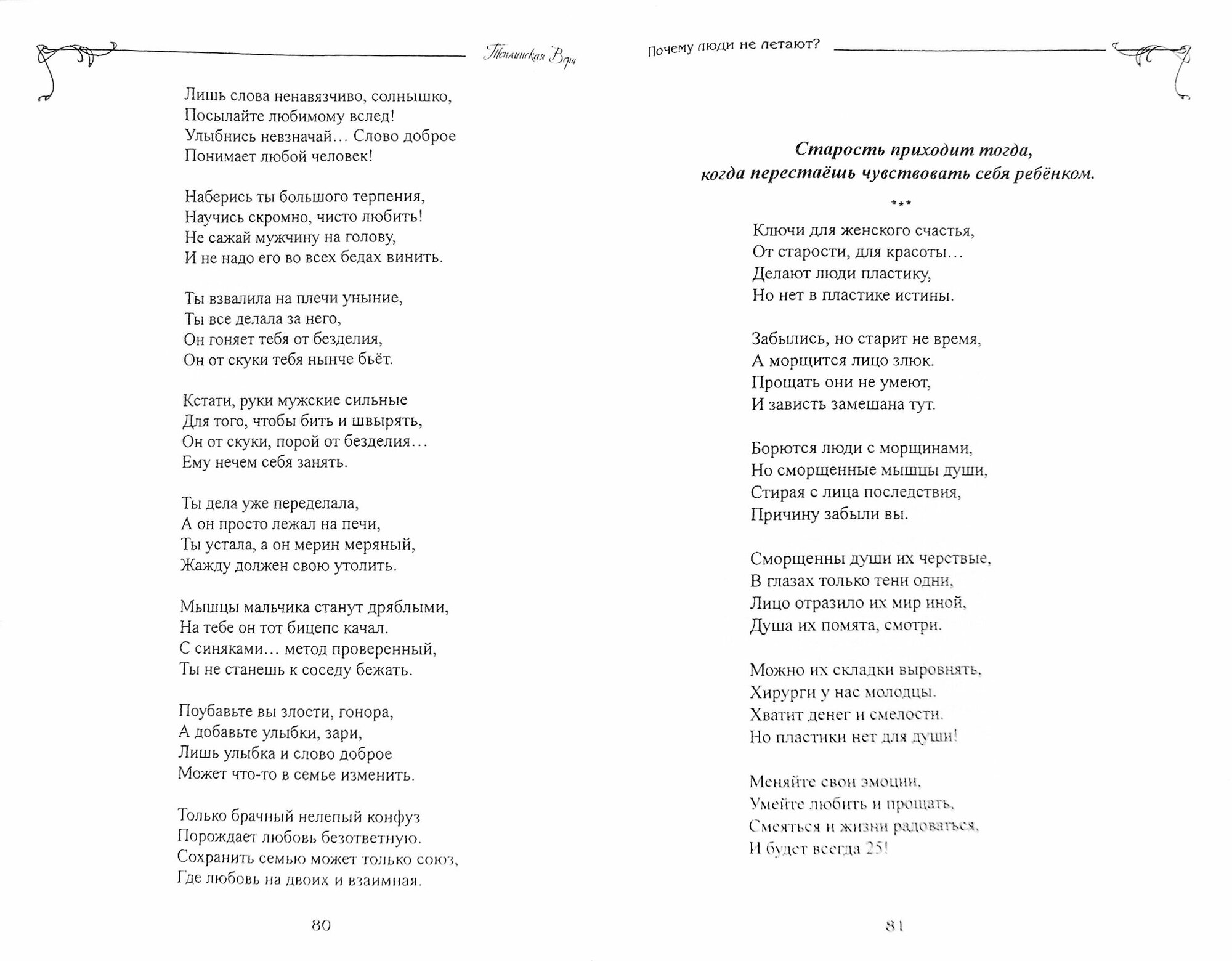 В книге представлены лучшие стихотворения, собранные с 1997 года. Новый цикл стихов состоит из трёх частей: "Я несу вам свет", "Почему люди не летают?" и "Мы не можем друг без друга". Теплинская В.В. - целитель с 23-летним стажем. Её знают во многих странах мира. Каждая встреча с Теплинской В.В. - праздник для души…