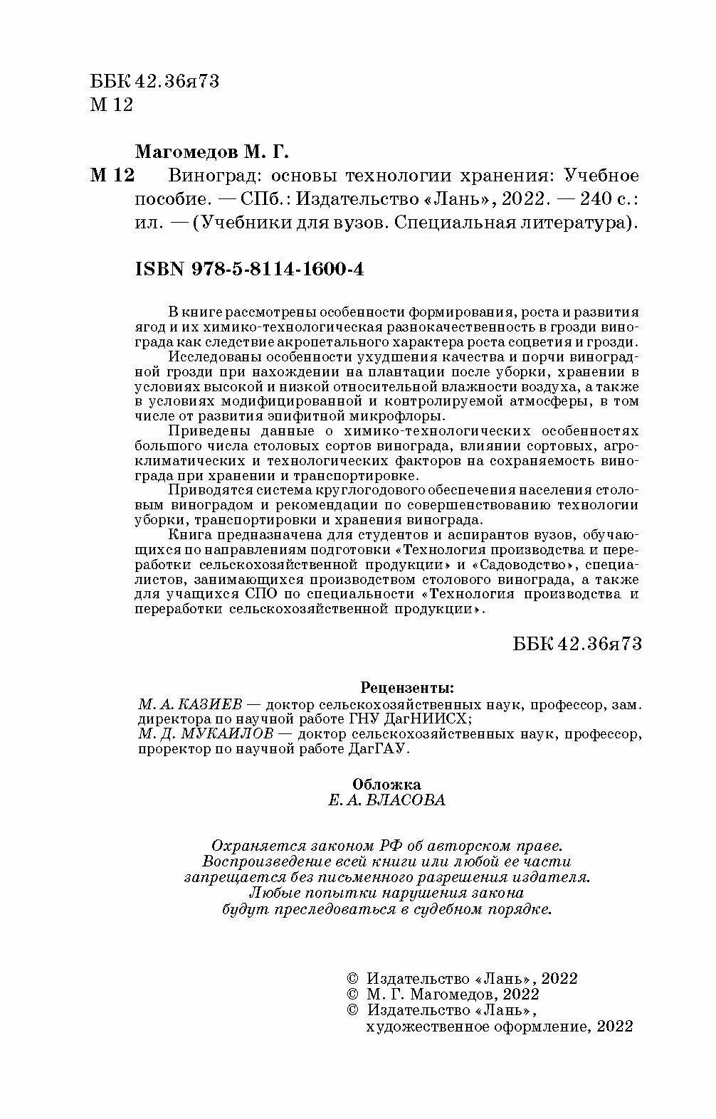 Виноград. Основы технологии хранения. Учебное пособие (М. Г. Магомедов); Издательство ЛАНЬ, 2015