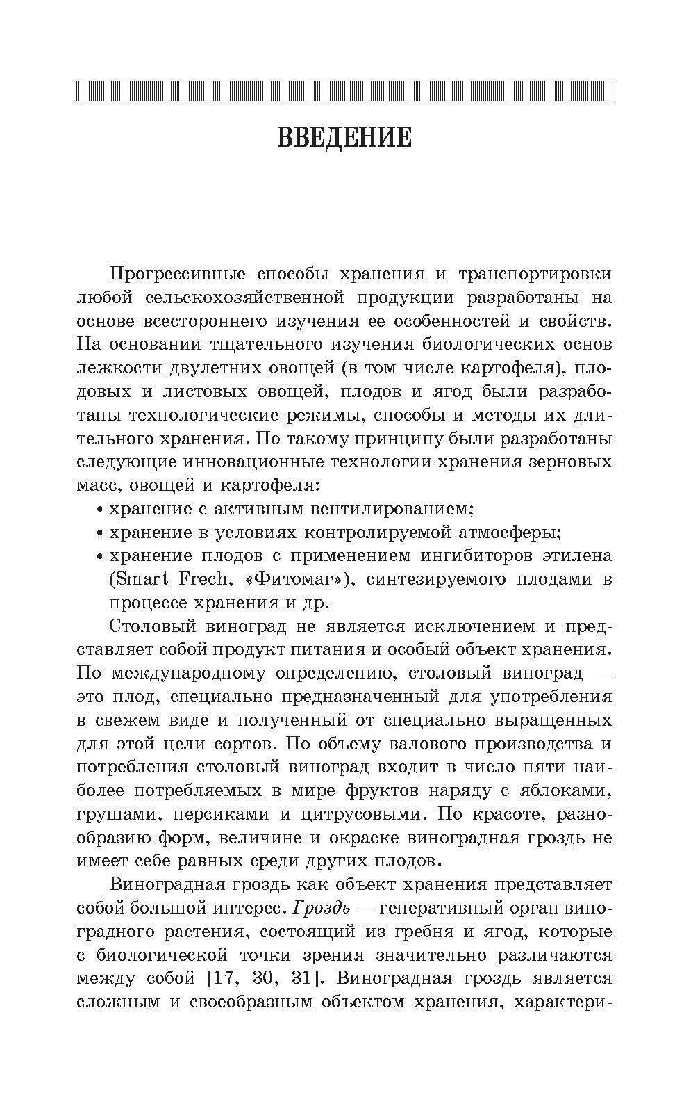 В книге рассмотрены особенности формирования, роста и развития ягод и их химико-технологическая разнокачественность в грозди винограда как следствие акропетального характера роста соцветия и грозди. Исследованы особенности ухудшения качества и порчи виноградной грозди при нахождении на плантации после уборки, хранении в условиях высокой и низкой относительной влажности воздуха, а также в условиях контролируемой атмосферы. Приведены данные о развитии эпифитной микрофлоры на гроздях винограда при хранении в зависимости от состава газовой среды. Даны рекомендации по совершенствованию технологии уборки, транспортировки и хранения винограда. Книга рассчитана на студентов, аспирантов, работников аграрных вузов и на специалистов, занимающихся производством столового винограда.