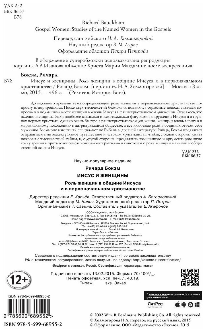 Мощнейшая научная работа, причем по теме, доселе почти никем не поднимаемой - о роли женщин в зарождении христианства. Автор приводит обширнейший материал, таблицы...Слов нет. По оформлению все так же замечательно - под глянцевой суперобложкой (картина Иванова, молодцы, лучше обложки не сыщешь!) красная книга с позолотой, смотрится как настоящее академическое издание. Цена соответствующая, но с учетом разных скидок вполне можно взять и дешевле. Но...есть ощущение, что популярной книга не станет. Кому нынче нужны серьезные научные труды?