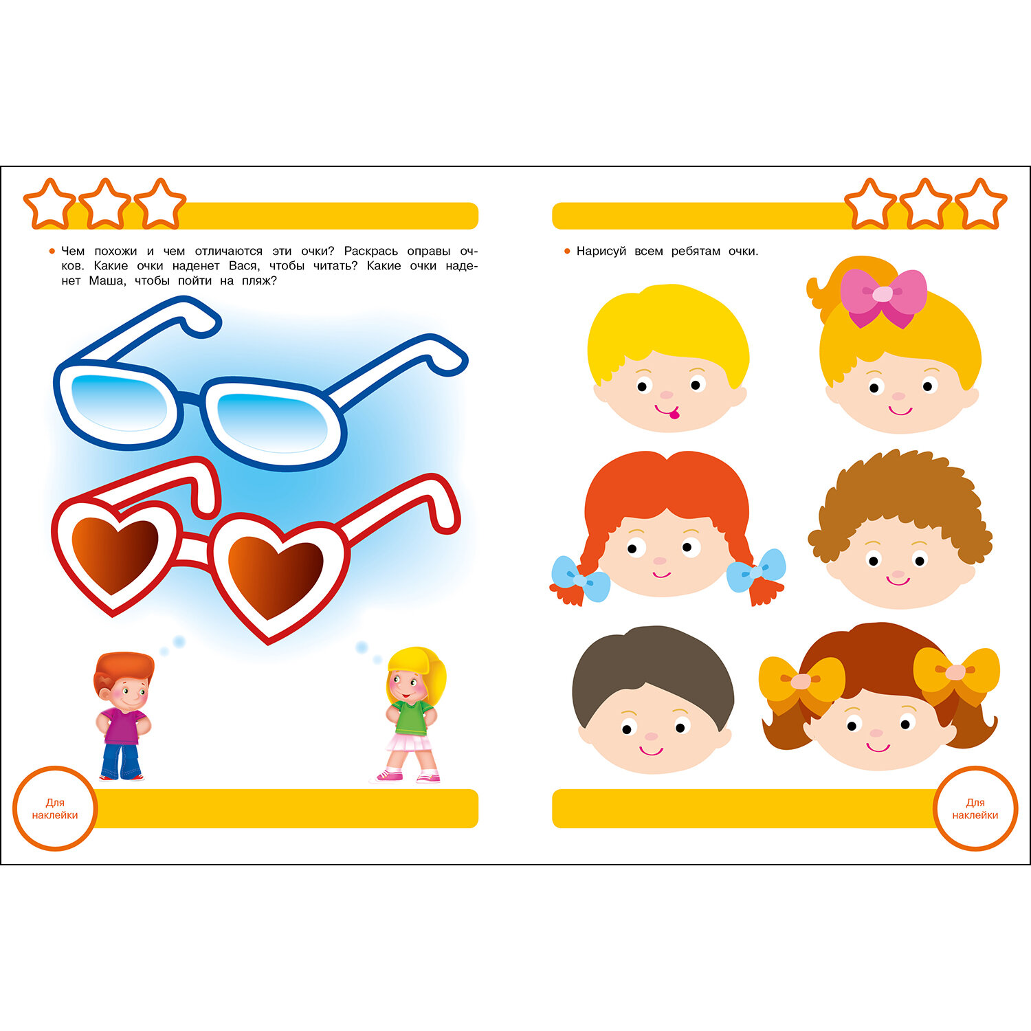 книга понравилась.Бумага плотная, не бликует, много заданий.Задания на разную тематику - дорисовать, расскрасить, найти отличия.Для ребенка 3 лет расскрасить многое сложно, т.к. мелкие предмет.Плюс наклейки, которые прилагаются, это не для того чтобы наклеить, например, недостающие предметы, а всего лишь для поощрения. Выполнил задание - получи наклейку (умница, отлично, здорово и т.д.)В целом книгой довольна и вообще эта серия для разнообразия и чтобы занять ребенка - это очень хорошая, рекомендую.