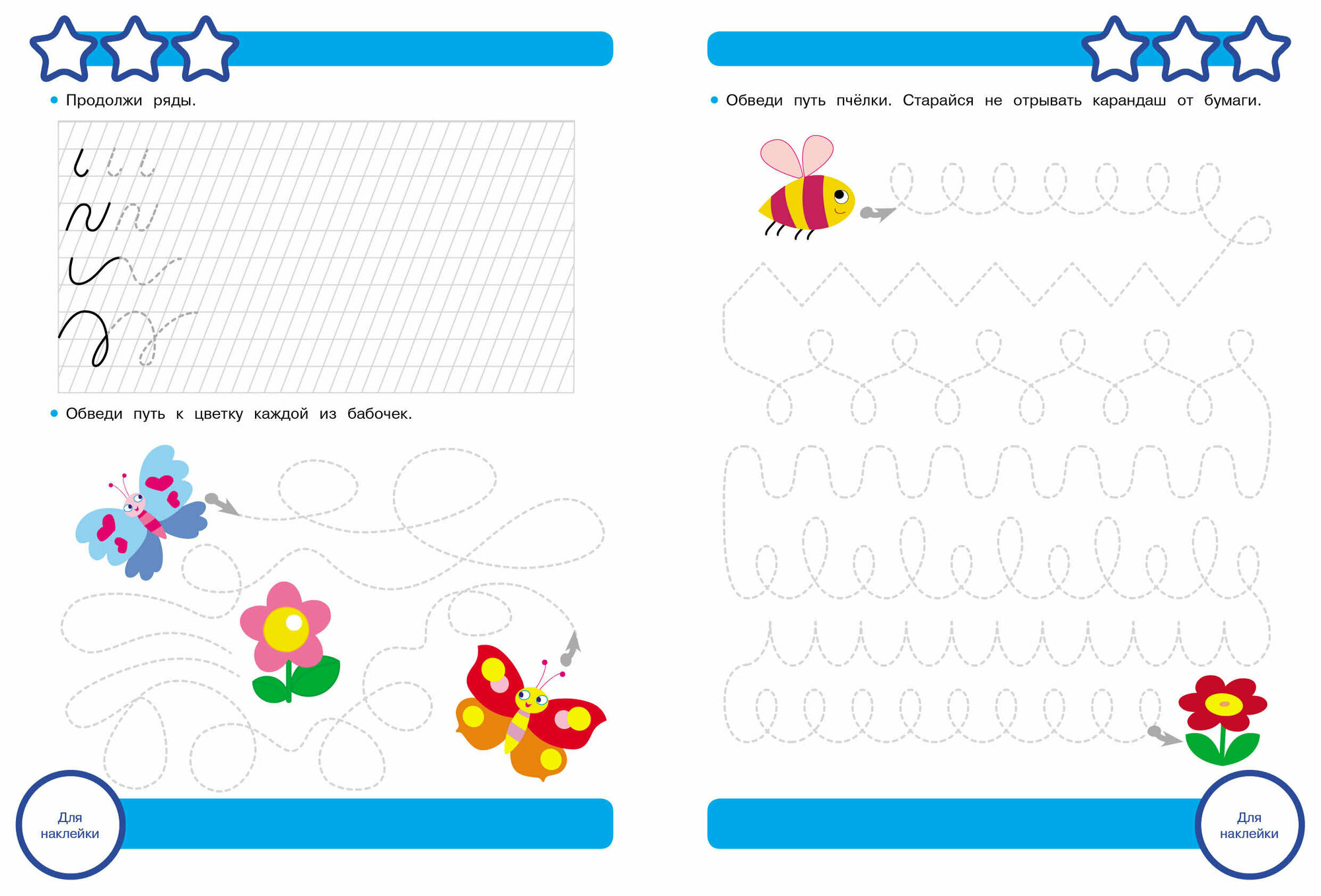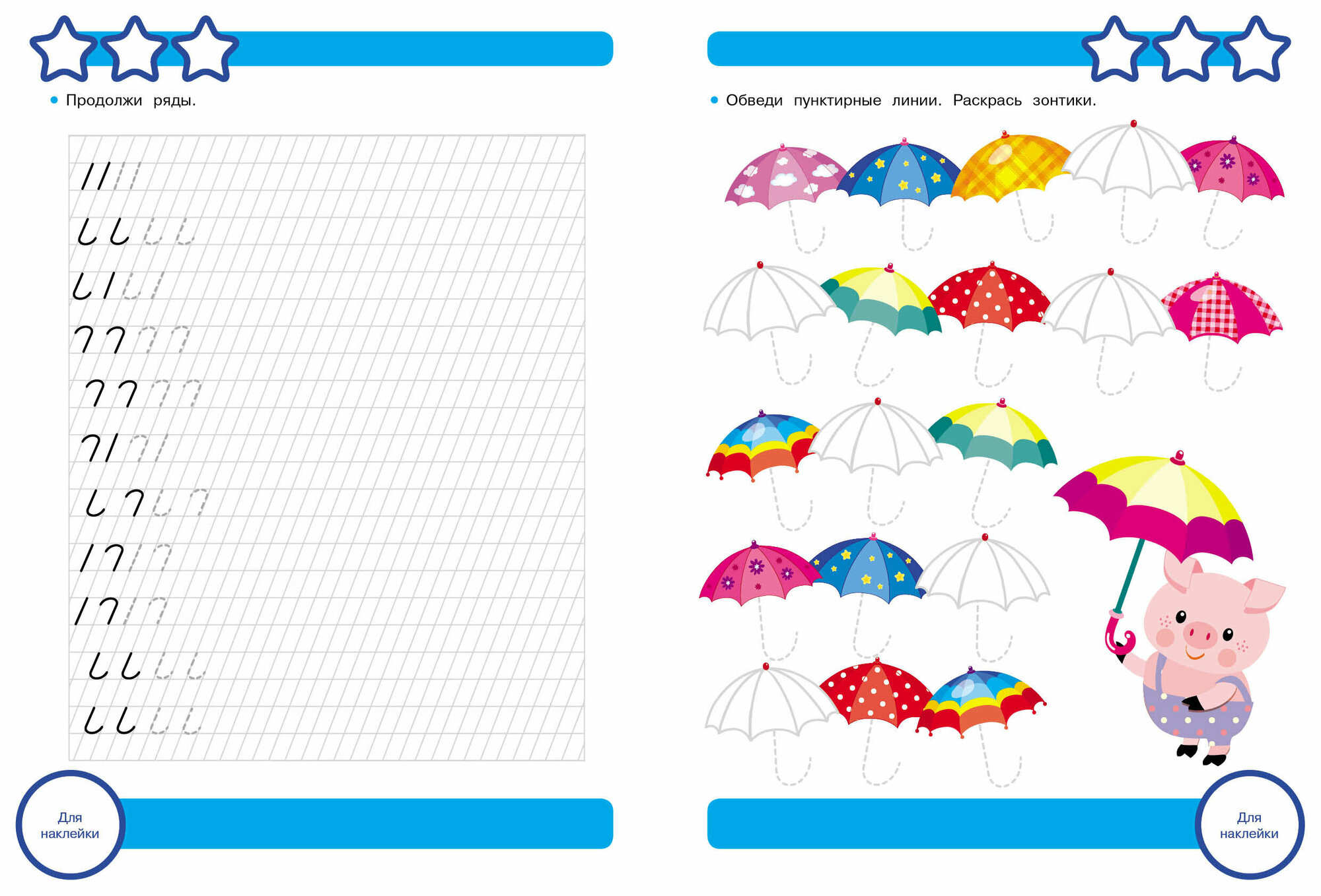 Замечательная рабочая тетрадь, по которой ребенку интересно заниматься. После выполнения задания можно выбрать и приклеить поощрительную наклейку. На каждом развороте ряды с палочками или закорючками и задания с иллюстрациями для закрепления навыков.