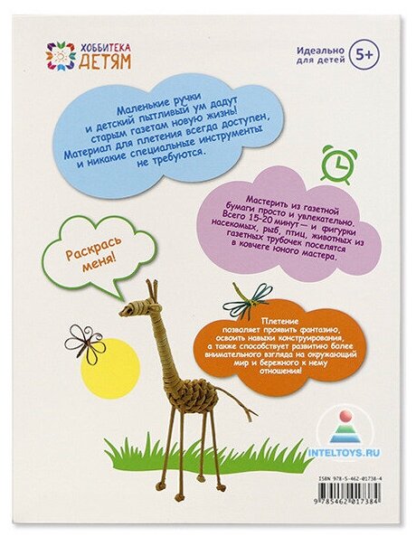 Очень интересная книжица. На рынке вообще мало чего есть про плетение из газетных трубочек - а уж для детей и подавно. О простоте техники вообще не говорю - итак ясно, что это предельно простой и дешевый вид творчества. Зато сами поделки впечатляют - прикольные, смешные, милые. Няшные.