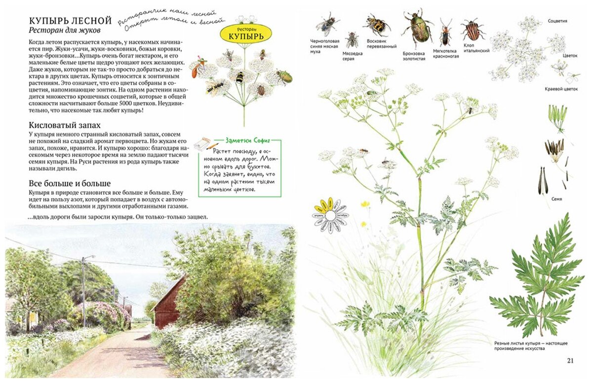 Если вдруг увлечетесь данным занятием, крайне рекомендую книгу «Популярный атлас-определитель» Владимира Новикова. С ней вы без труда научитесь разбираться во всех дикорастущих растениях. Но в атласе-определителе нет интересных историй про растения, а в книжке «Софи в мире цветов» они есть. Так что эти книги очень хорошо дополняют друг друга.