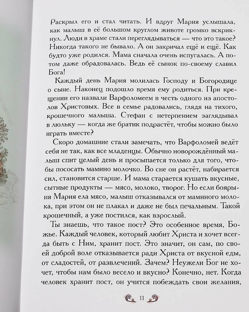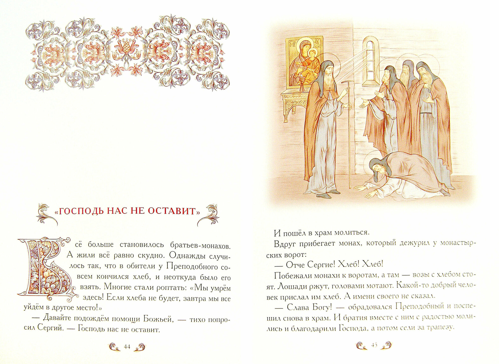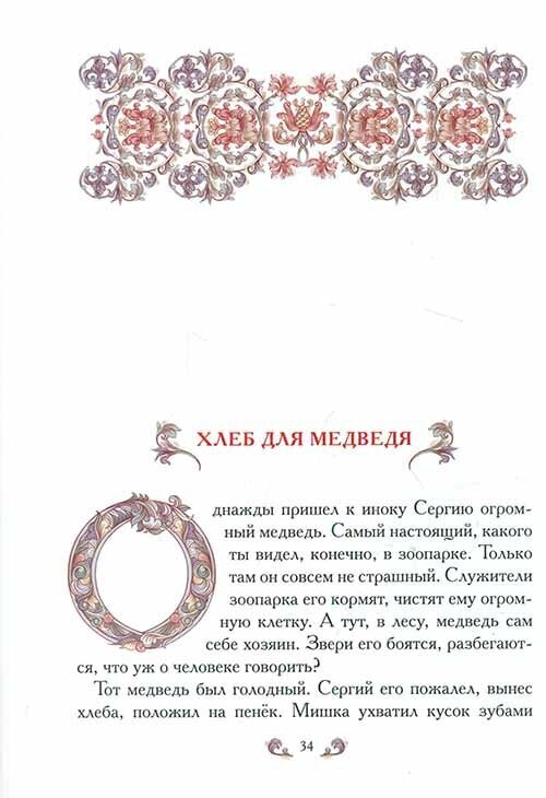Эта книга познакомит маленьких читателей с житием одного из прославленных русских святых Преподобного Сергия Радонежского. Несмотря на детский пересказ, житие описано довольно подробно и интересно не только для маленьких, но и для взрослых читателей. Единственное, что хотелось бы добавить - это хотя бы короткую молитву Сергию Радонежскому в конце книги. Книга выполнена в спокойных пастельных тонах, приятных для взора. Иллюстрации на каждой странице, а также множество иллюстраций на полностраничный разворот. Станет прекрасным подарком от крестных родителей для ребенка от 4 лет.