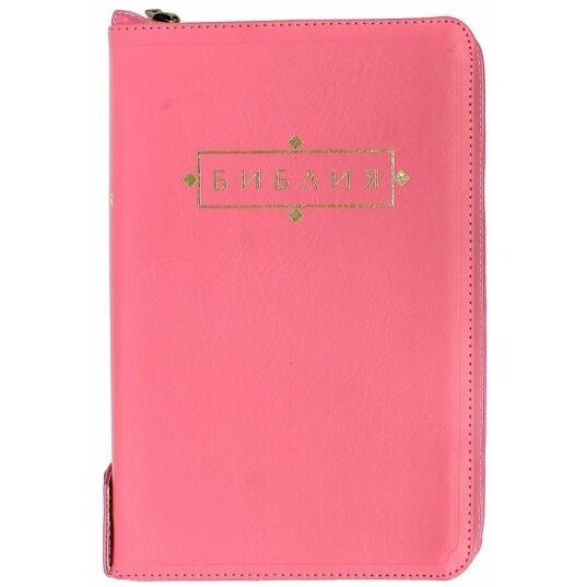 Гибкий кожаный переплет на "молнии" с фикс. кнопкой, "золотой" обрез, две закладки, с индексами для поиска библейских книг.